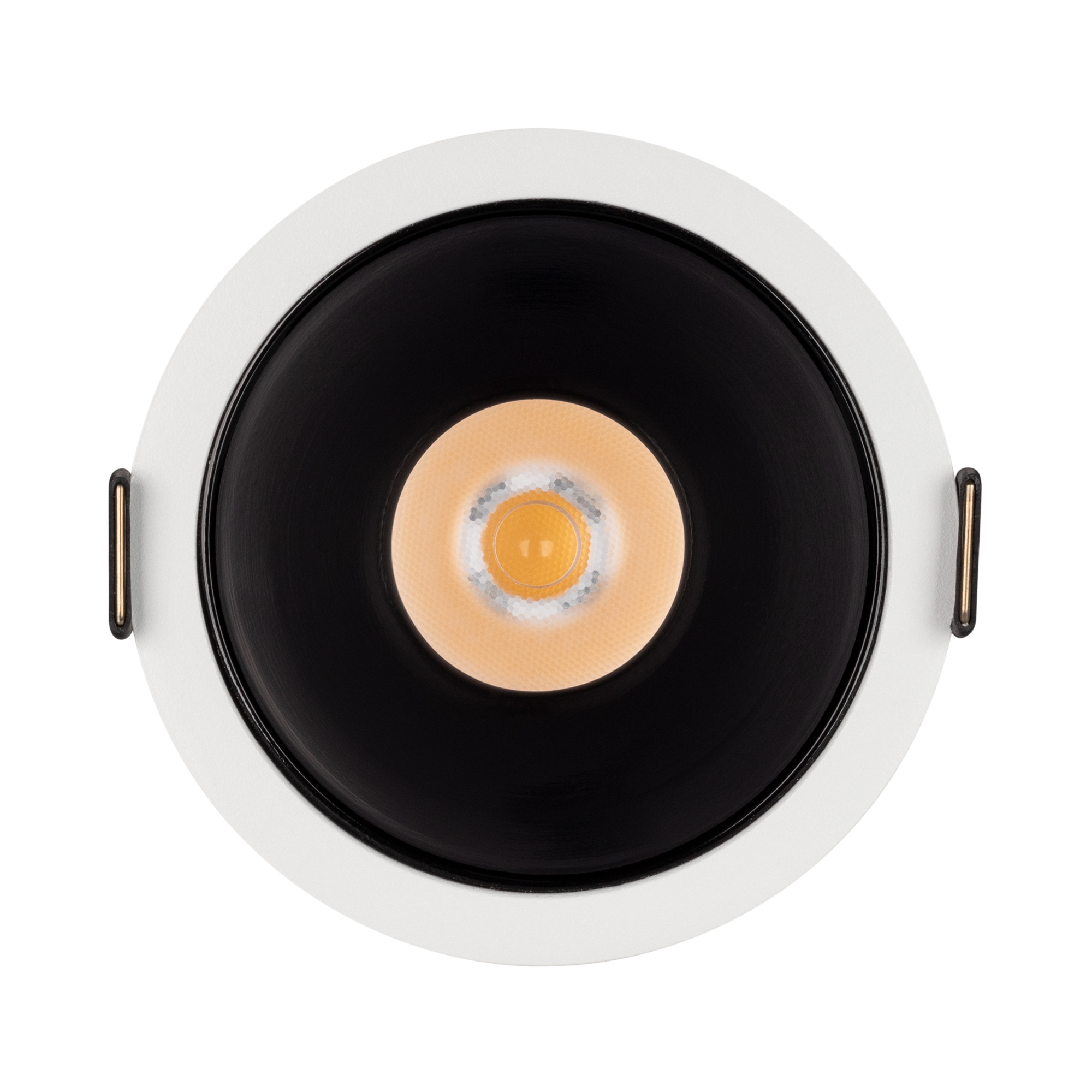 Встраиваемый светильник даунлайт. Мощность 23.3 Вт, св. поток 1995 лм, 86 лм/Вт, теплый 3000 K, CRI>90, UGR<16, угол 30°, напряжение питания 230 В. Белый круглый корпус из алюминия, черный ГЛЯНЦЕВЫЙ отражатель из PMMA, степень защиты IP20. Размер: диаметр 90 мм, высота 93 мм. Монтаж встраиваемый, установочное отверстие: диаметр 82 мм. Драйвер 30-40 В, 600 мА, пульсация <1%.