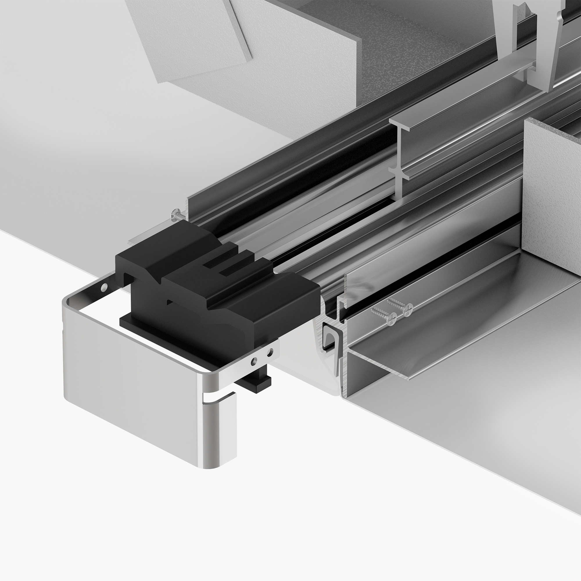 Металлическая заглушка для профиля FOLED-50-CENTER. Имеет паз для крепления натяжного потолка. Придает законченный вид светильнику, а также защищает светодиодную ленту от внешних факторов (грязи, пыли и прочего).