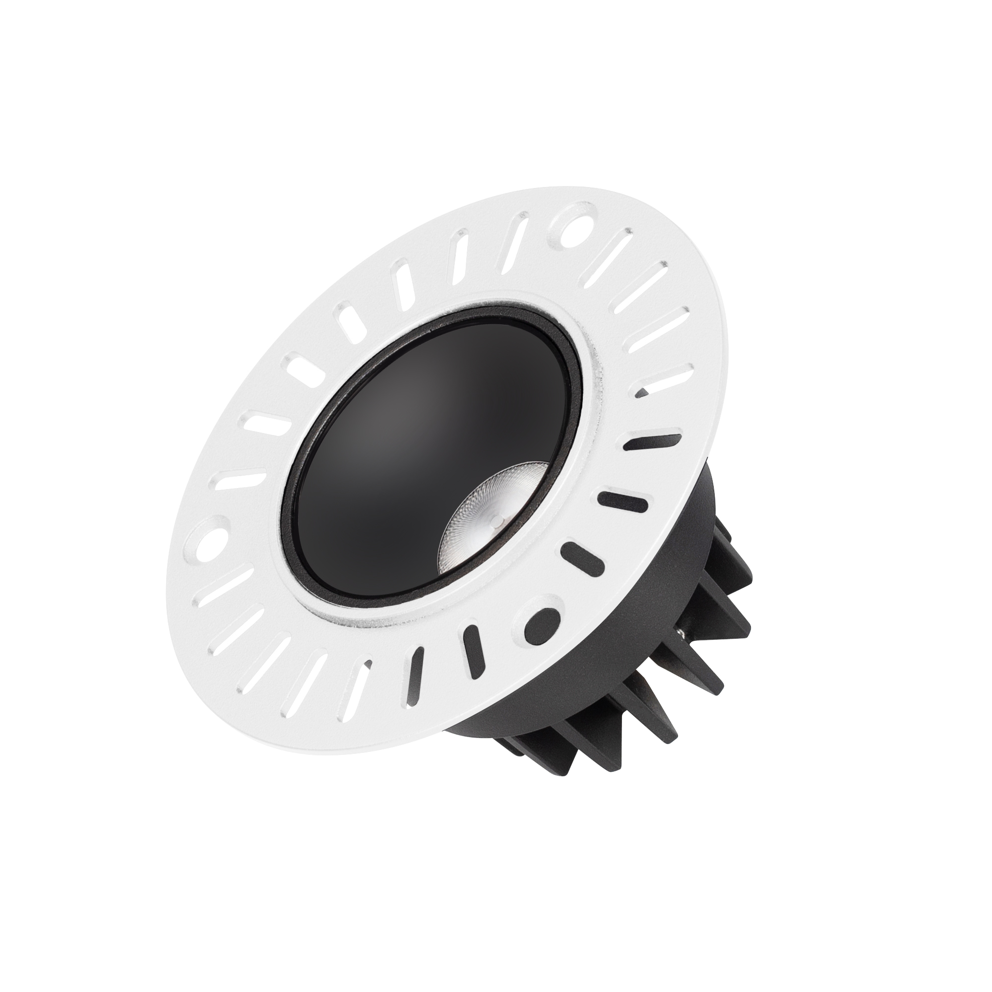 Встраиваемый безрамочный светильник под шпаклевку. Мощность 6.3 Вт, св. поток 455 лм, 72 лм/Вт, тёплый 3000 K, CRI>90, угол 40°, напряжение питания 230 В. Чёрный круглый корпус из алюминия, черный МАТОВЫЙ отражатель из PMMA, степень защиты IP20. Размер: диаметр 90 мм, высота 52 мм. Монтаж встраиваемый, установочное отверстие диаметр 65 мм. Драйвер 28-42 В, 150 мА, пульсация <2%.
