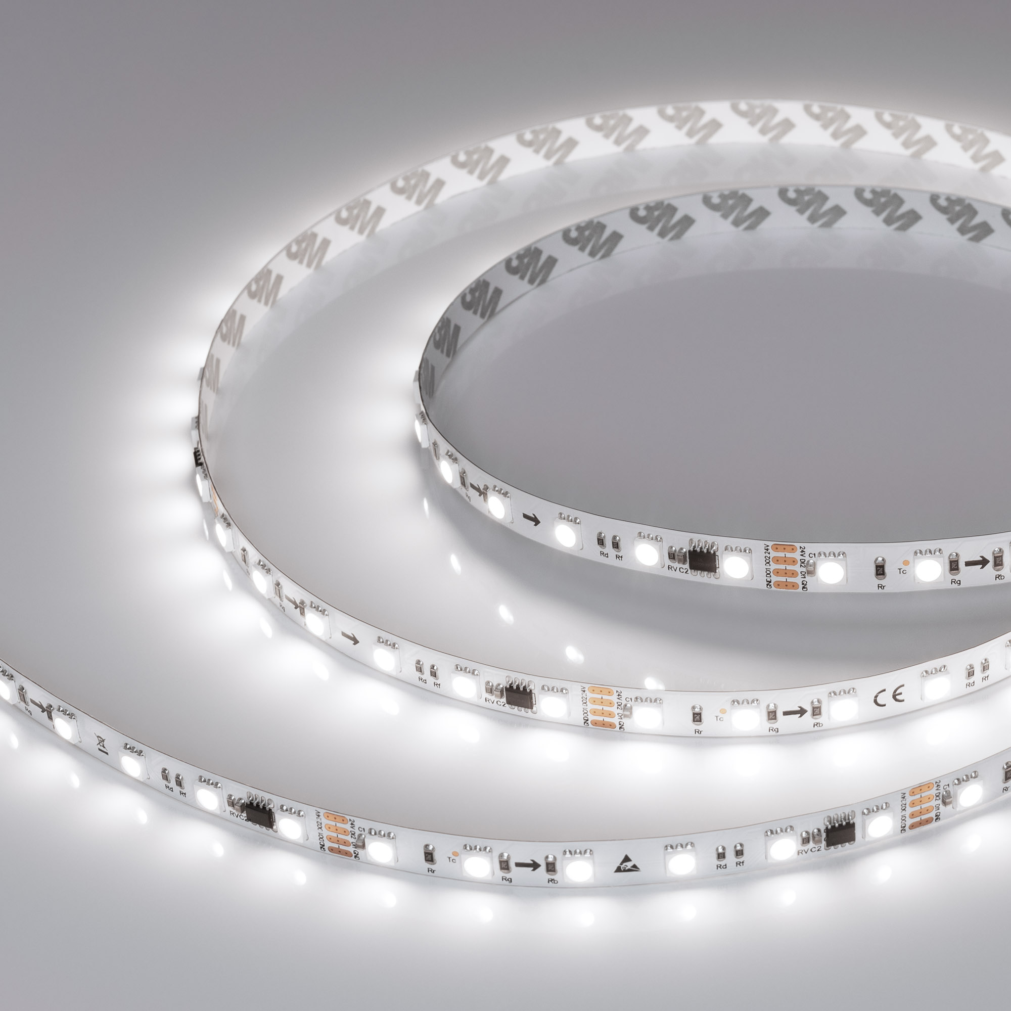 Светодиодная лента SPI серии B60 с микросхемой GS8206. Светодиоды SMD 5060, 60 шт/м, 10 pixels на 1 м (50 pixels на 5 м), 1 pixel = 6 светодиодов, белая плата шириной 10 мм, скотч 3М. Цвет БЕЛЫЙ 6000K, индекс цветопередачи CRI>80, угол 120°. Питание 24 В, мощность 15 Вт/м (75 Вт на 5 м). Размеры 5000x10x2.1 мм. Мин. отрезок 100 мм, 6 светодиодов. Цена за 1 м.