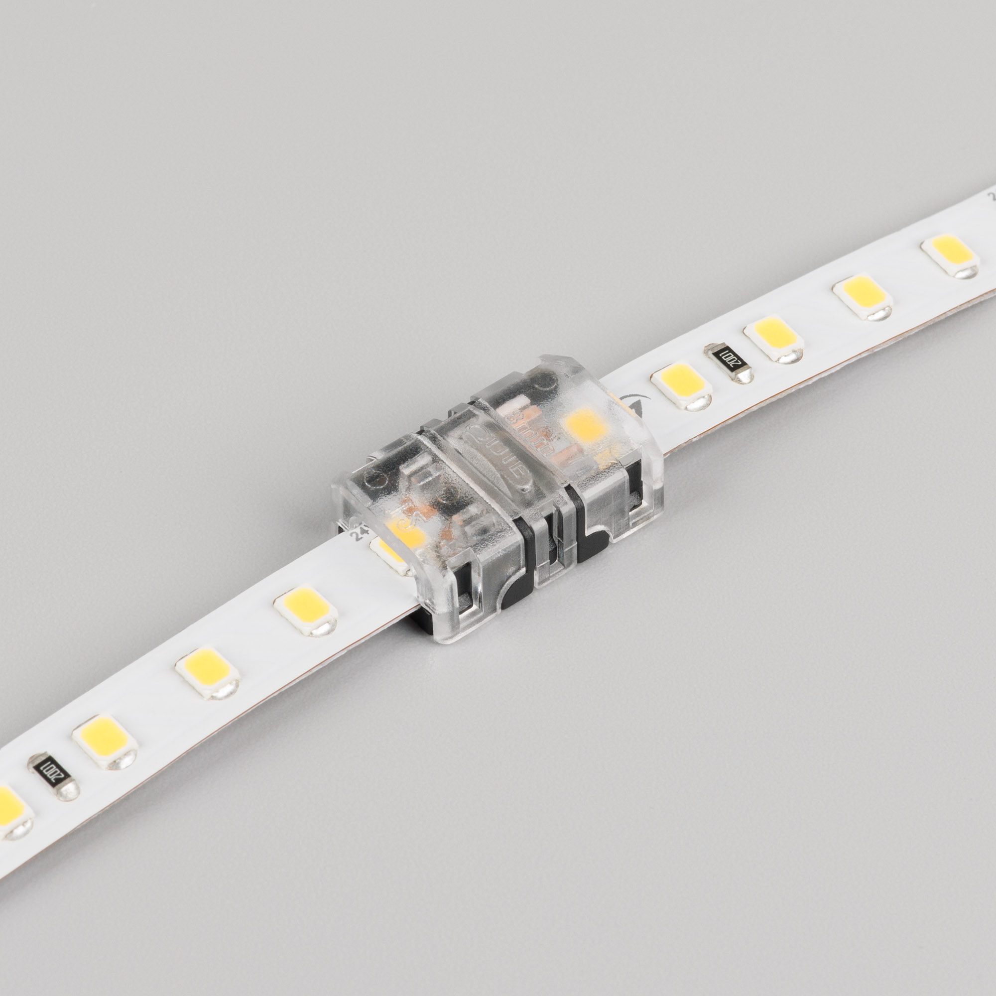 Одиночный коннектор для соединения 2-х отрезков открытых IP20 светодиодных одноцветных лент шириной 8 мм с высокой плотностью светодиодов. Материал - прозрачный пластик. Обеспечивает соединение без видимых разрывов. Максимальный допустимый ток 3 А, напряжение 3-24 В. Цена за 1шт.