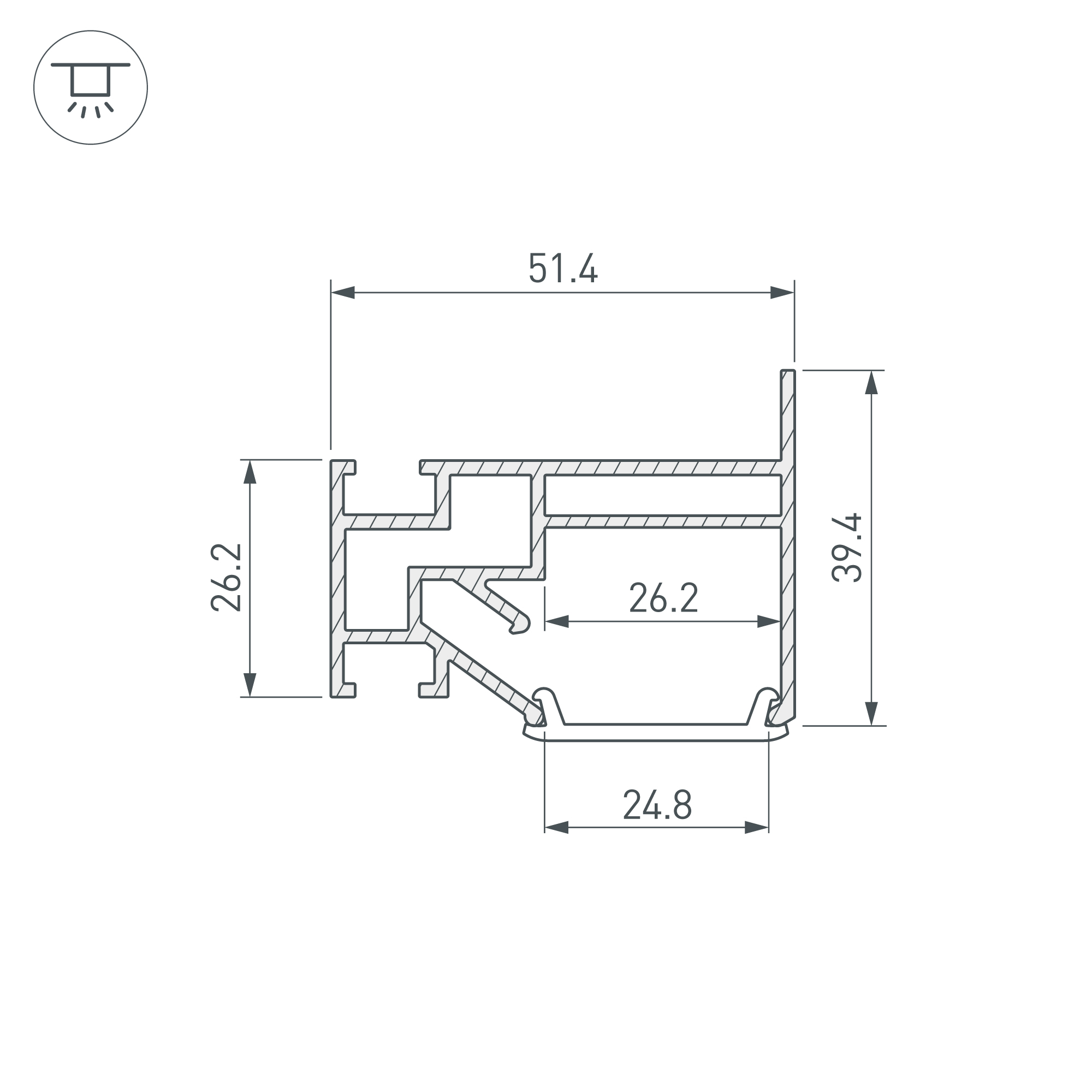 Встраиваемый алюминиевый профиль (боковая линия) для дизайнерских решений «линии света» в натяжных потолках. Решение 2-в-1: служит каркасом для крепления натяжного потолка и профилем для установки светодиодной ленты. Габаритные размеры профиля составляют 2000 мм в длину, 51,4 мм в ширину и 29,5 мм в высоту. Площадка для установки светодиодных лент позволяет использовать ленту шириной до 26 мм и мощностью до 45 Вт/м. Это обеспечивает гибкость в выборе светодиодных лент и создает потрясающие световые решения. Экран и другие аксессуары не включены в комплект и приобретаются отдельно. Цена указана за 1 метр профиля. Отличное решение для создания современных световых проектов.