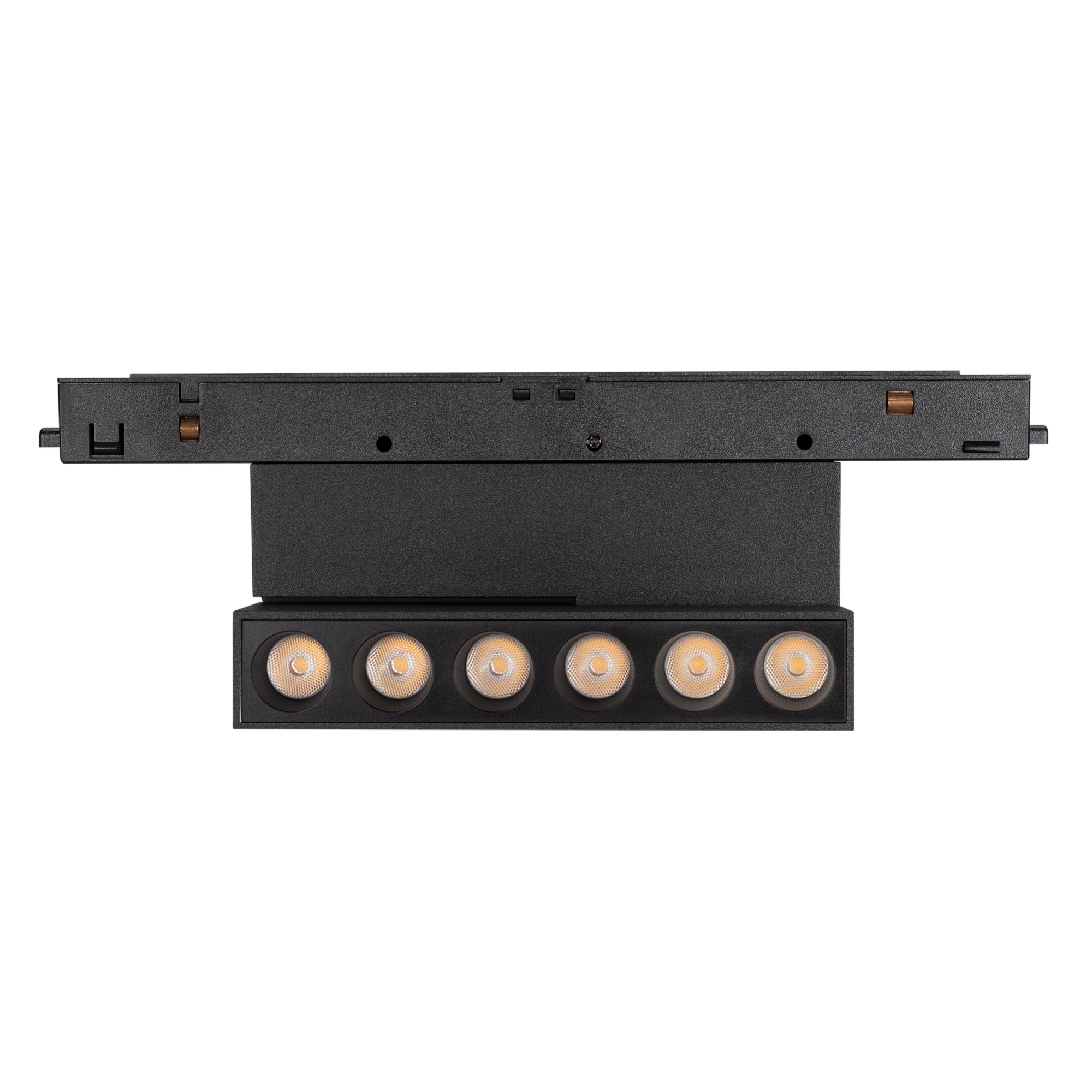 Поворотный светильник ORIENT-DOTS-FOLD мощностью 6 Вт для магнитных треков MAG-ORIENT шириной 26 мм с управлением по DALI. Теплый цвет свечения (3000 К), световой поток 250 лм, световая эффективность 42 лм/Вт и высокий индекс цветопередачи обеспечивают качественное, равномерное освещение. Прямоугольный корпус из алюминия черного цвета. Светильник быстро и надежно крепится на трек с помощью магнитов и механических фиксаторов. Корпус светильника отклоняется на 90 градусов по вертикали относительно потолка. Узкий угол излучения 30 градусов подойдет для организации направленного освещения. Имеет защиту от пыли IP20 для применения внутри помещений, где нет контакта с жидкостями. Минимальный коэффициент пульсации гарантирует зрительный комфорт без мерцания. Гарантия до 5 лет указывает на надежность и длительную работоспособность. Драйвер для подключения 48В поставляется отдельно.