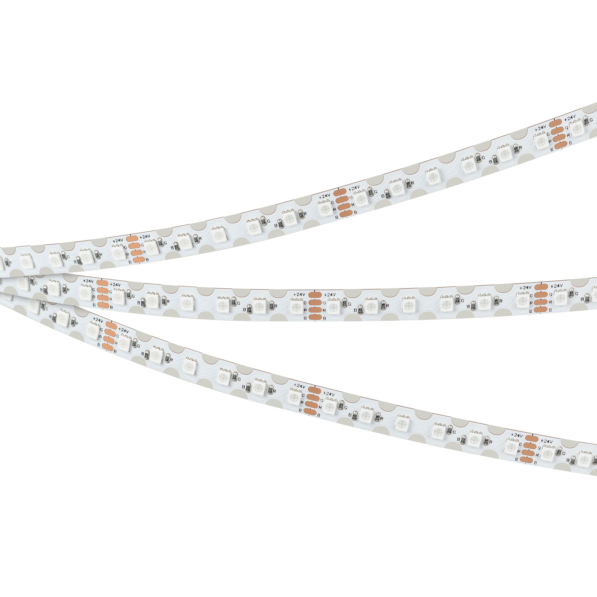 Гибкая лента RZ с фигурной платой в форме волны, легко изгибается на плоскости, открытая IP20. Светодиоды 2835, 120 шт/м (600шт на 5м), белая плата, скотч 3М. Цвет RGB, угол 120°. Питание 24 В, мощность 12 Вт/м (60 Вт на 5 м). Размеры 5000x8x1.4 мм. Мин. отрезок 50 мм, 6 светодиодов. Цена за 1 м.