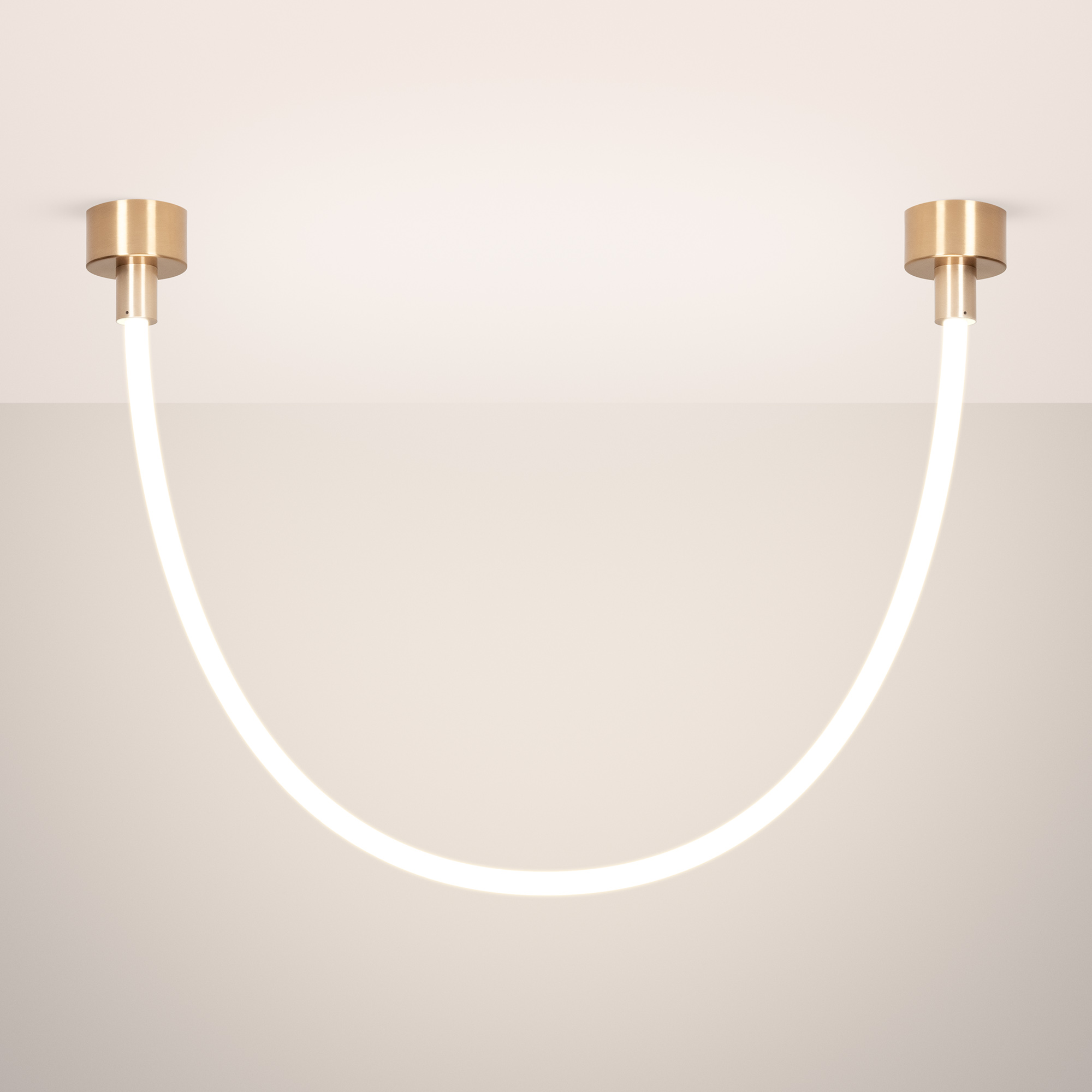Подвесной светильник. Мощность 18 Вт, св. поток 980 лм, 54 лм/Вт, тёплый 3000 K, CRI>90, угол 360°, напряжение питания 230 В. Золотой круглый корпус из стали, силиконовая герметичная лента, степень защиты IP20. Размер: общая высота чаши 85 мм, высота чаши без вывода под неон 50 мм, диаметр вывода под неон 35 мм, диаметр чаши 130 мм, диаметр силиконовой герметичной ленты 18 мм, длина силиконовой герметичной ленты 1200 мм. Монтаж накладной. Блок питания 24 В, 750 мА, пульсация <5%.