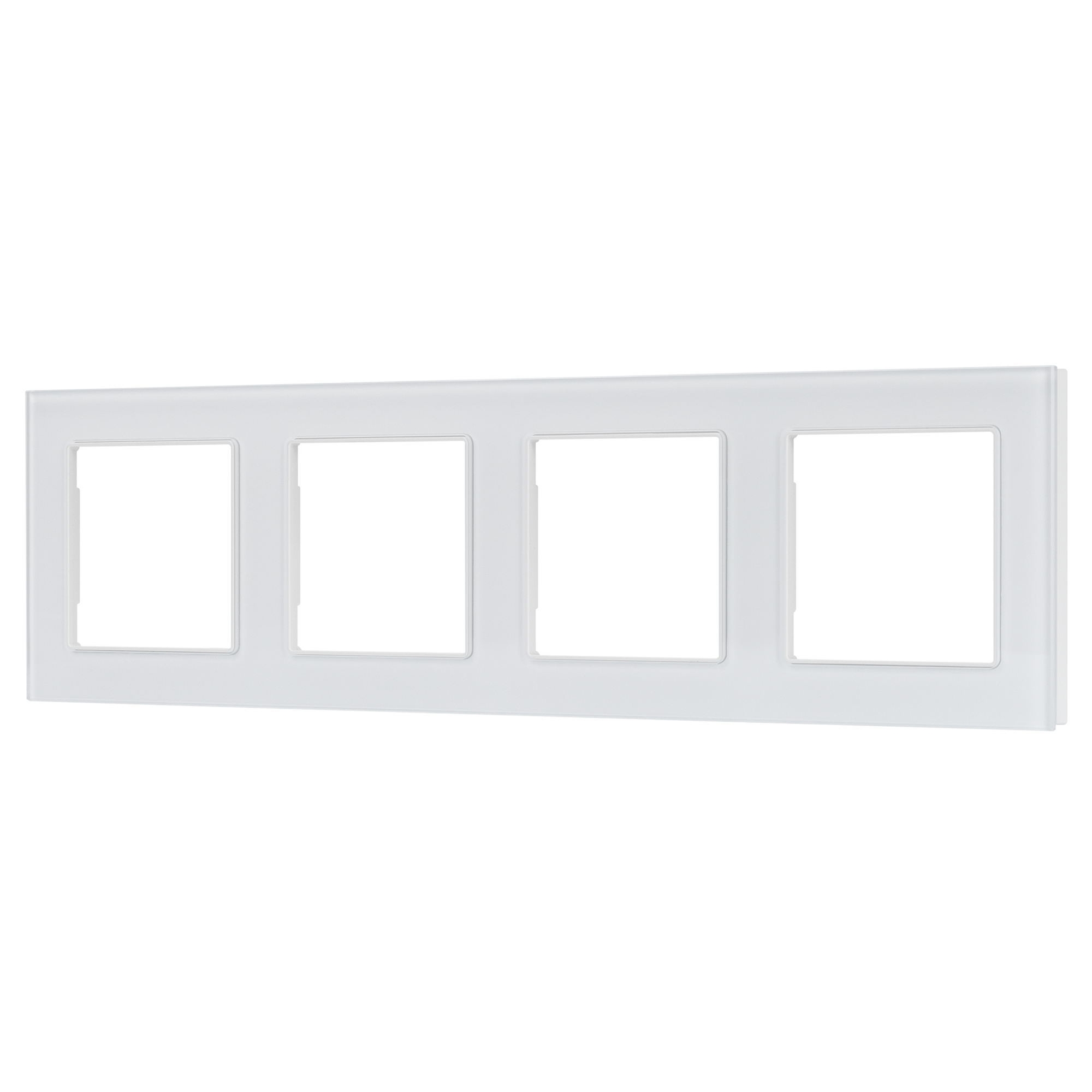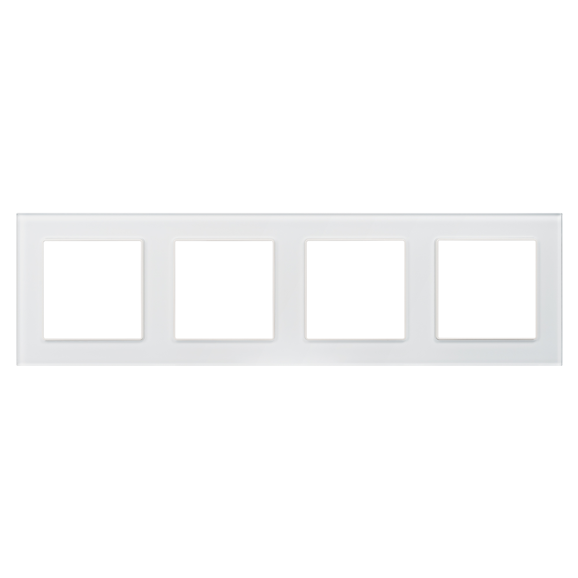 Рамка стеклянная на 4 поста, под встраиваемый механизм (квадрат). Цвет - белый. Ориентации монтажа - горизонтальная. Габаритные размеры: длина 295 мм, ширина 82 мм, высота 10 мм. Гарантийный срок 12 мес.