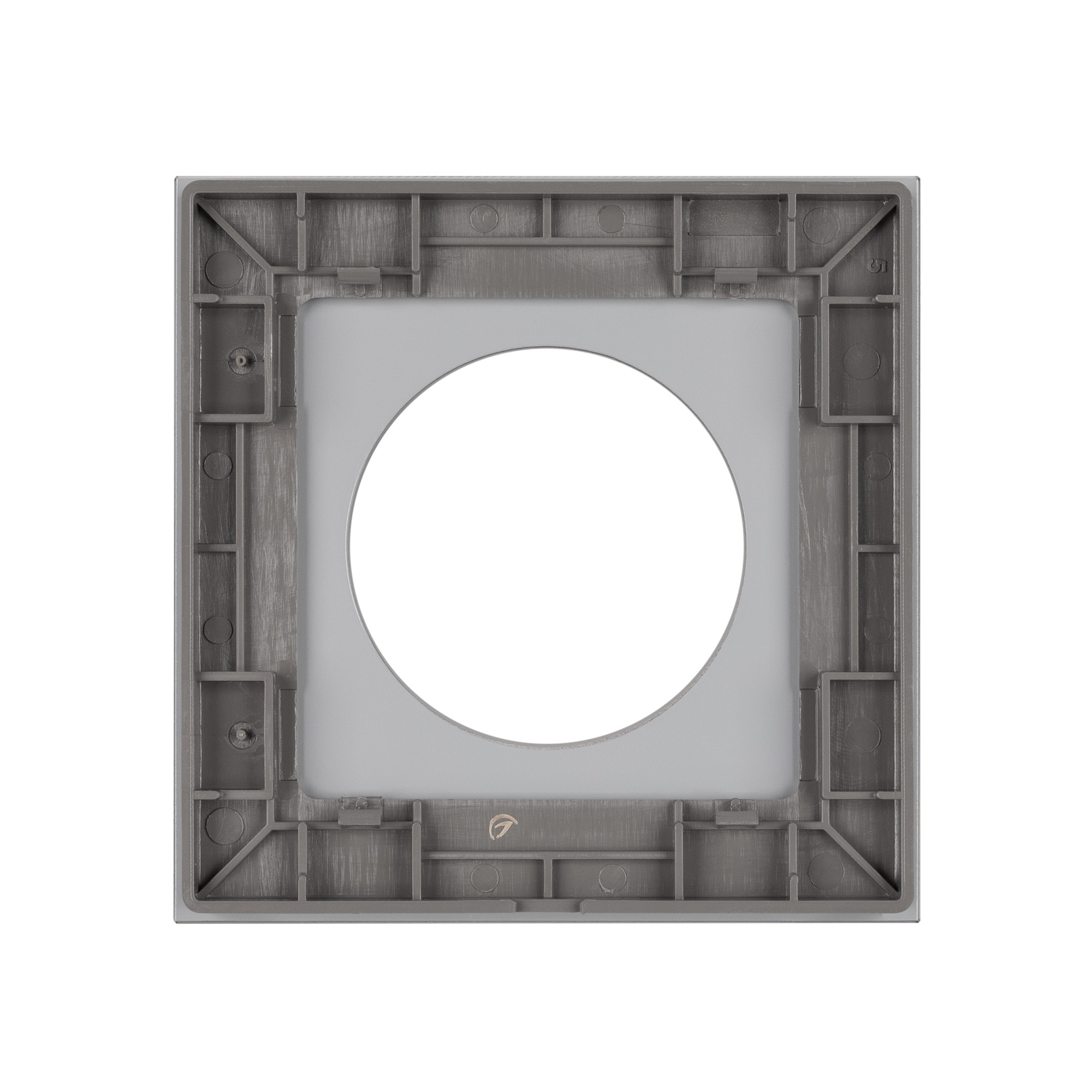 Рамка стеклянная на 1 пост, под встраиваемый механизм. Вырез под функциональную часть круг. Цвет - серый. Ориентации монтажа - горизонтальная. Габаритные размеры: длина 82 мм, ширина 82 мм, высота 10 мм. Гарантийный срок 12 мес. Рамка совместима только с механизмами арт. 043741/043739/043740