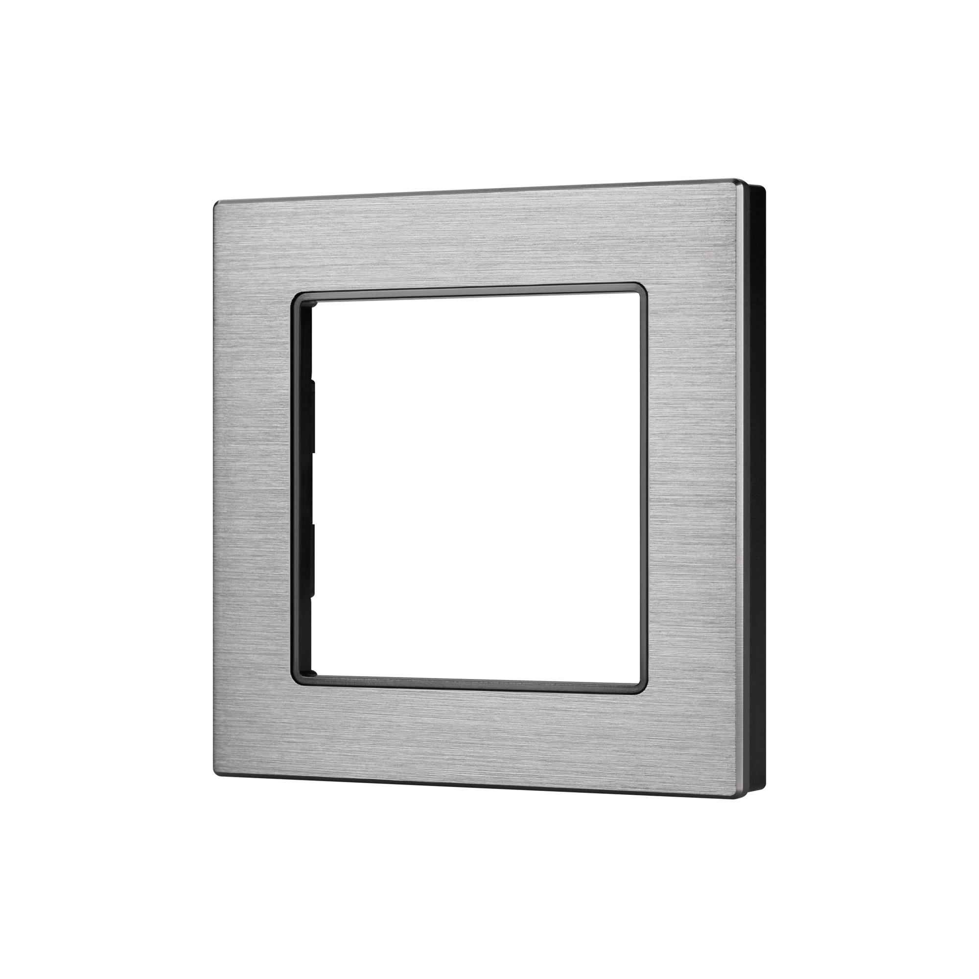 Рамка алюминиевая на 1 пост, под встраиваемый механизм (квадрат). Цвет - серый. Ориентации монтажа - горизонтальная/вертикальная.