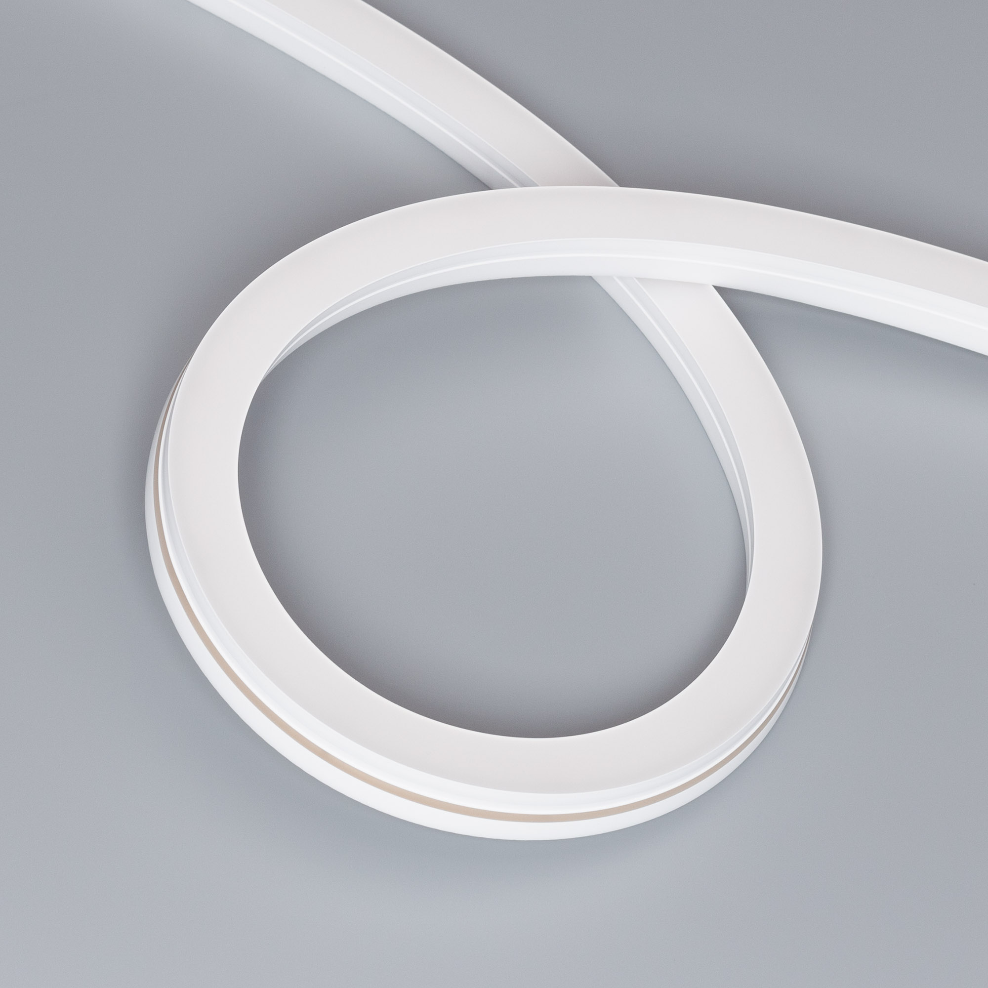 Гибкая герметичная лента (неон серии MOONLIGHT), сечение 16×16 мм. Светодиоды CSP 280 шт/м. Цвет свечения ТЕПЛЫЙ (3500К), индекс цветопередачи CRI>90, световой поток 405 лм/м, угол излучения 114°. Мощность 10 Вт/м, питание 24 В. Класс пылевлагозащиты IP67. Размеры 15000×16×16 мм. Мин. отрезок 50 мм. Горизонтальный изгиб SIDE, минимальный радиус изгиба 120 мм. Катушка 15 м. Цена за 1 м. Гарантия 5 лет.