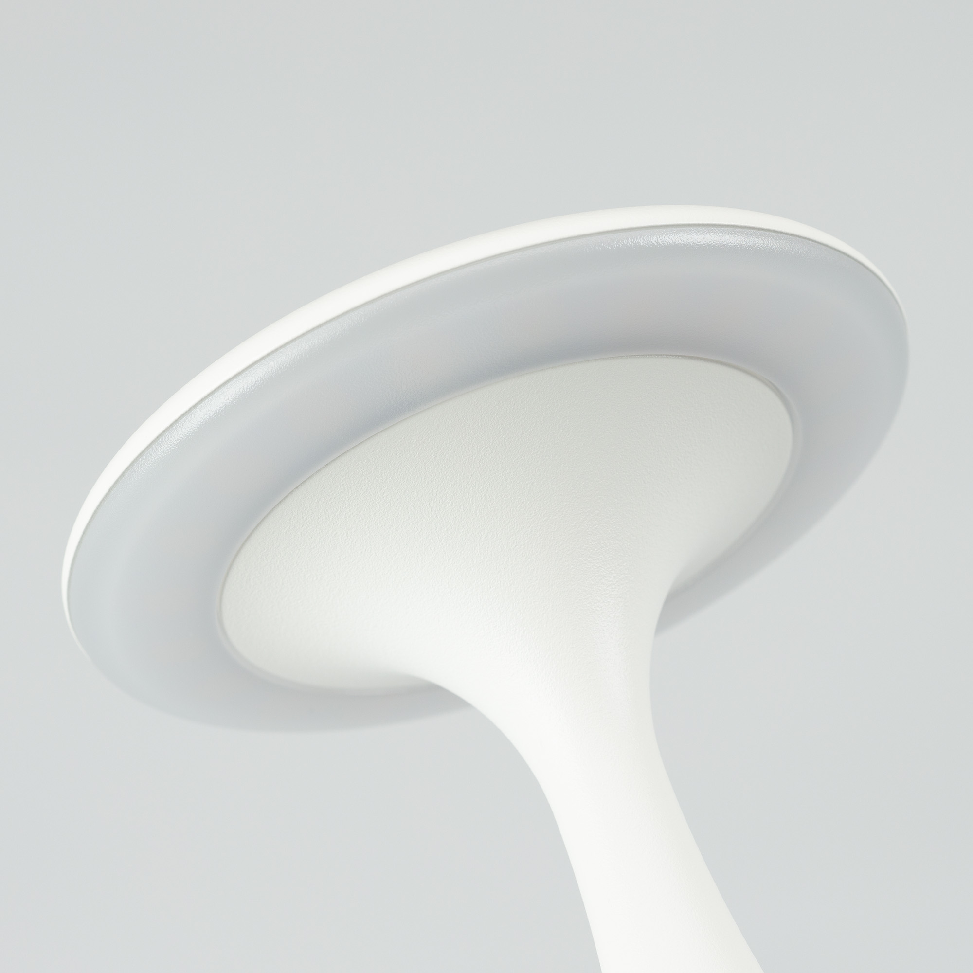 Настольный светильник со встроенным аккумулятором 1.5Вт, белый алюминиевый корпус. Цвет ТЕПЛЫЙ БЕЛЫЙ 2200-3000K, св.поток 110лм, CRI(Ra)>80, угол 123°. Размер Ф101x197мм. IP54. Зарядка от сети переменного тока AC220-240V. Тип встроенного аккумулятора 2600мАч Li-ion, напряжение батареи 3.7V