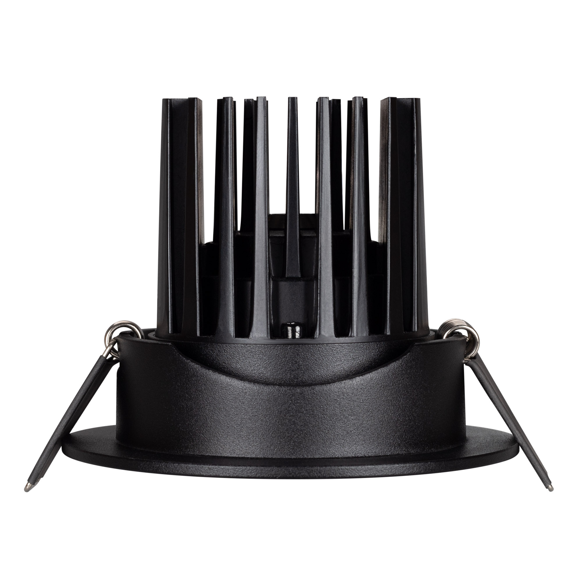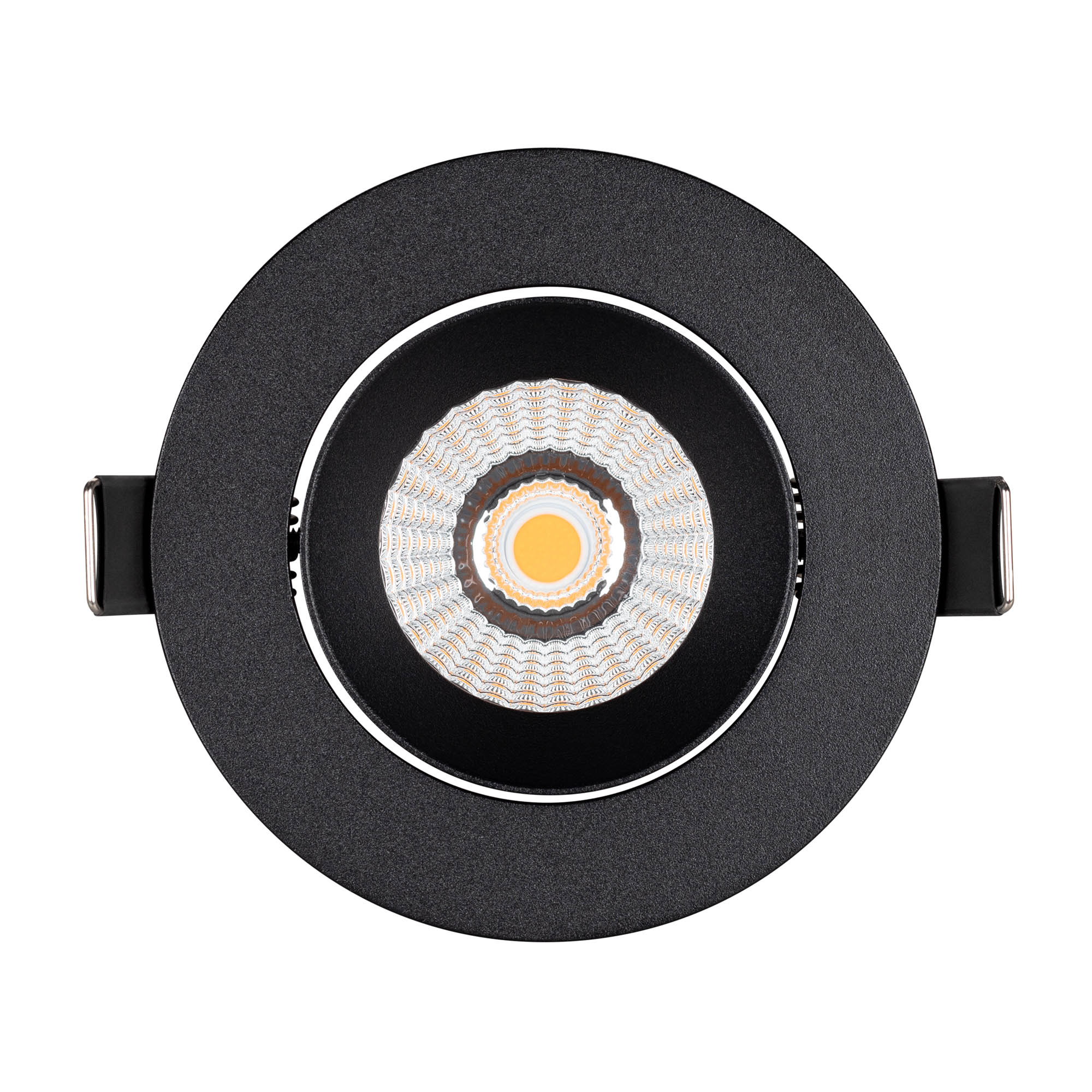 Встраиваемый поворотный светильник даунлайт. Мощность 10 Вт, св. поток 910 лм, 90 лм/Вт, дневной 4000 K, CRI>90, угол 60°, напряжение питания 230 В. Чёрный круглый корпус из алюминия, экран PMMA, степень защиты IP54. Размер: диаметр 94 мм, высота 75 мм. Монтаж встраиваемый, установочное отверстие: диаметр 75 мм. Драйвер IP54, 20-40 В, 250 мА, пульсация <1%.