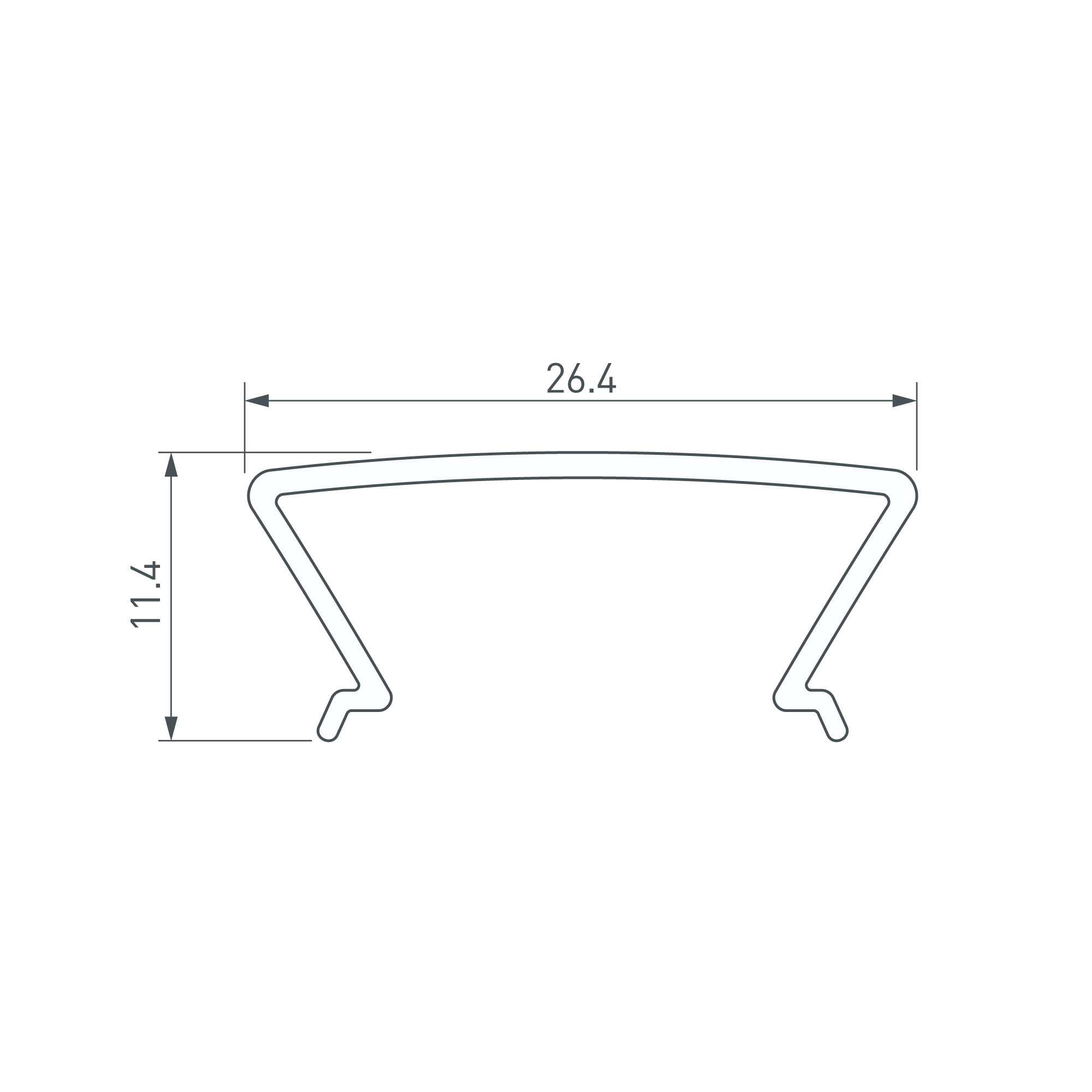 Матовый фигурный рассеиватель из акрила со светопропусканием 82% и УФ-защитой предназначен для использования с профилем FOLED. Он эффективно равномерно рассеивает свет, размывая точки светодиодов на поверхности. Этот элемент придает завершенный внешний вид светильнику, а также обеспечивает надежную защиту светодиодной ленты от воздействия внешних факторов, таких как грязь и пыль.