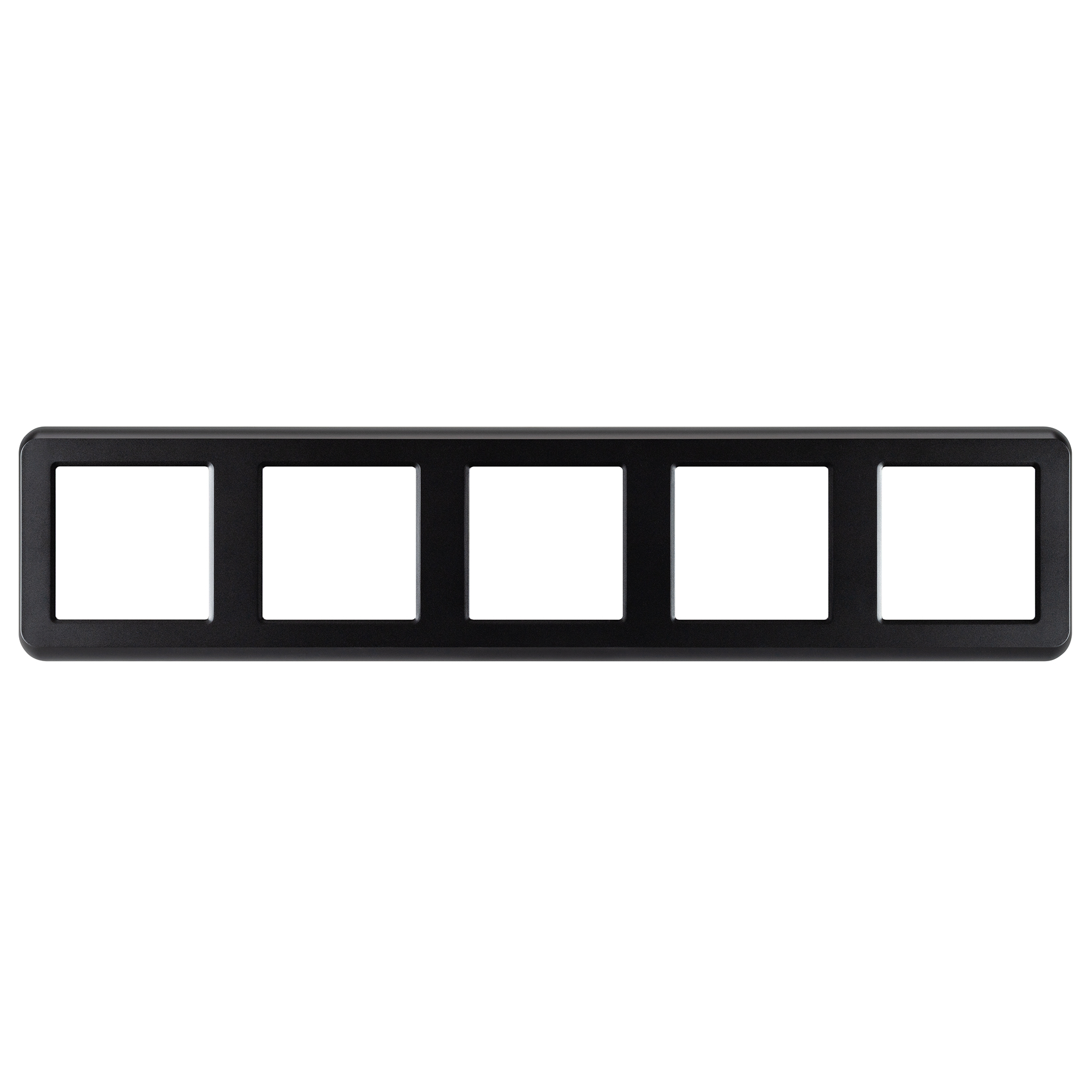 Рамка пластиковая на 5 постов, под встраиваемый механизм (квадрат). Цвет - черный. Ориентации монтажа - горизонтальная.