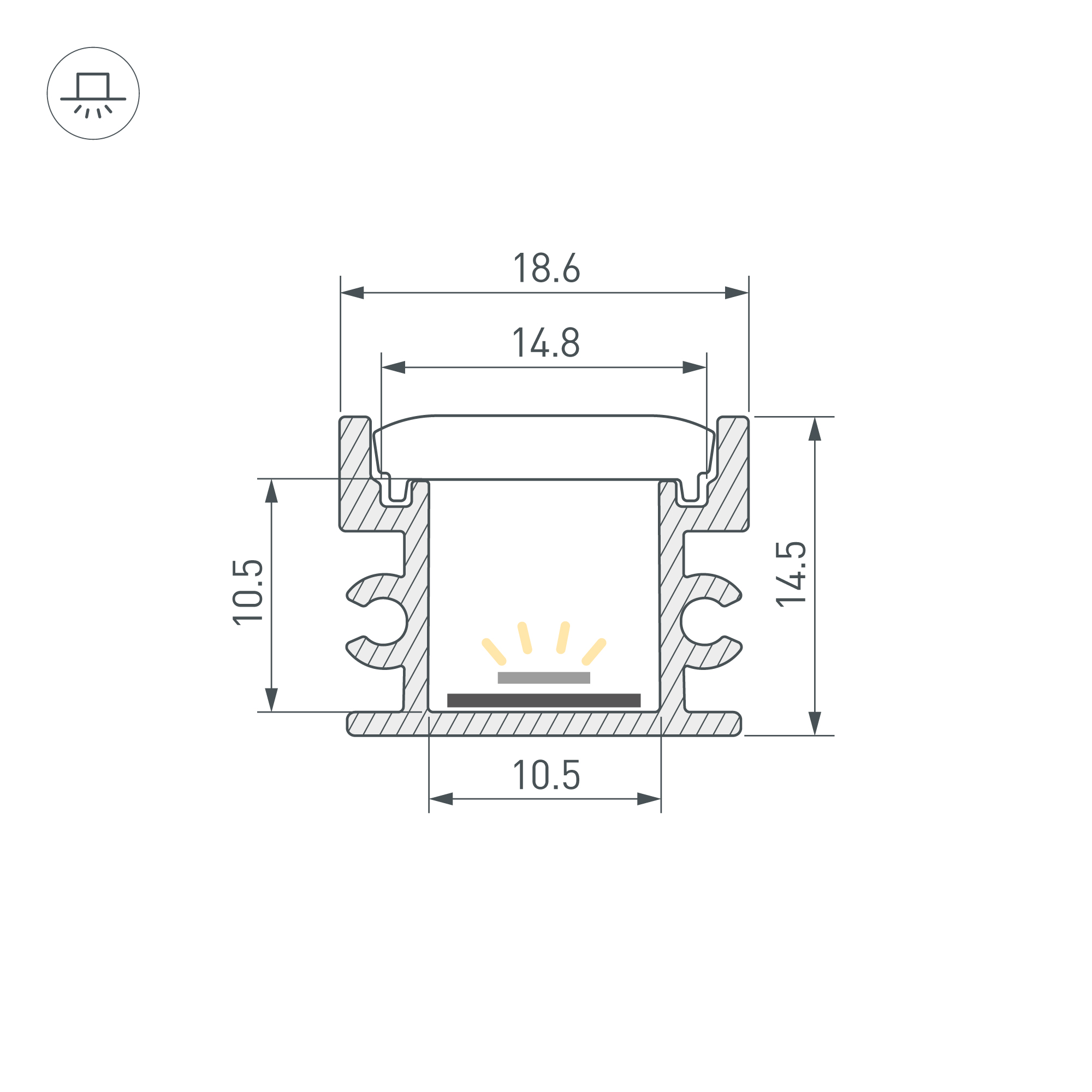Алюминиевый анодированный профиль. Возможность герметизации до IP65 (при использовании силиконового клея для фиксации экрана и заглушек), IK10 (08-10). Габаритные размеры (L×W×H): 3000x18x15мм. Ширина площадки для ленты 10,5 мм. Заглушки и другие аксессуары приобретаются отдельно. Цена за 1 метр.