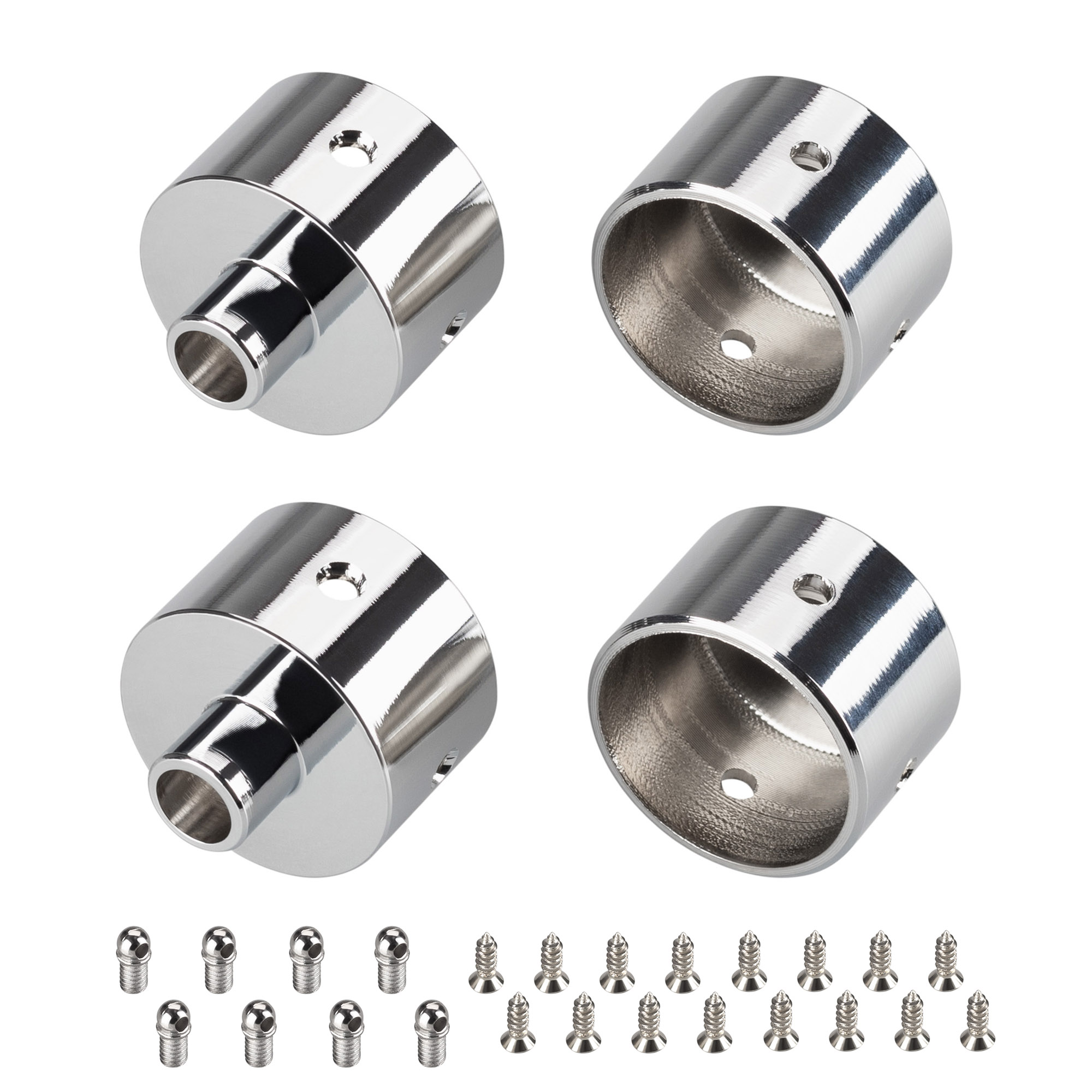 Металлические заглушки (4 шт.) с отверстием для профиля WPH-FLEX-D22-360deg. Придают законченный вид светильнику, а также защищают светодиодную ленту от внешних факторов (грязи, пыли и прочего). Отверстие в заглушке позволяет вывести кабель питания светодиодной ленты.