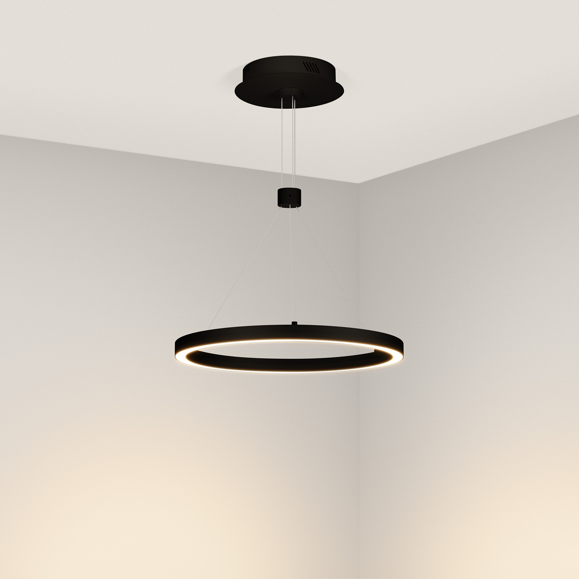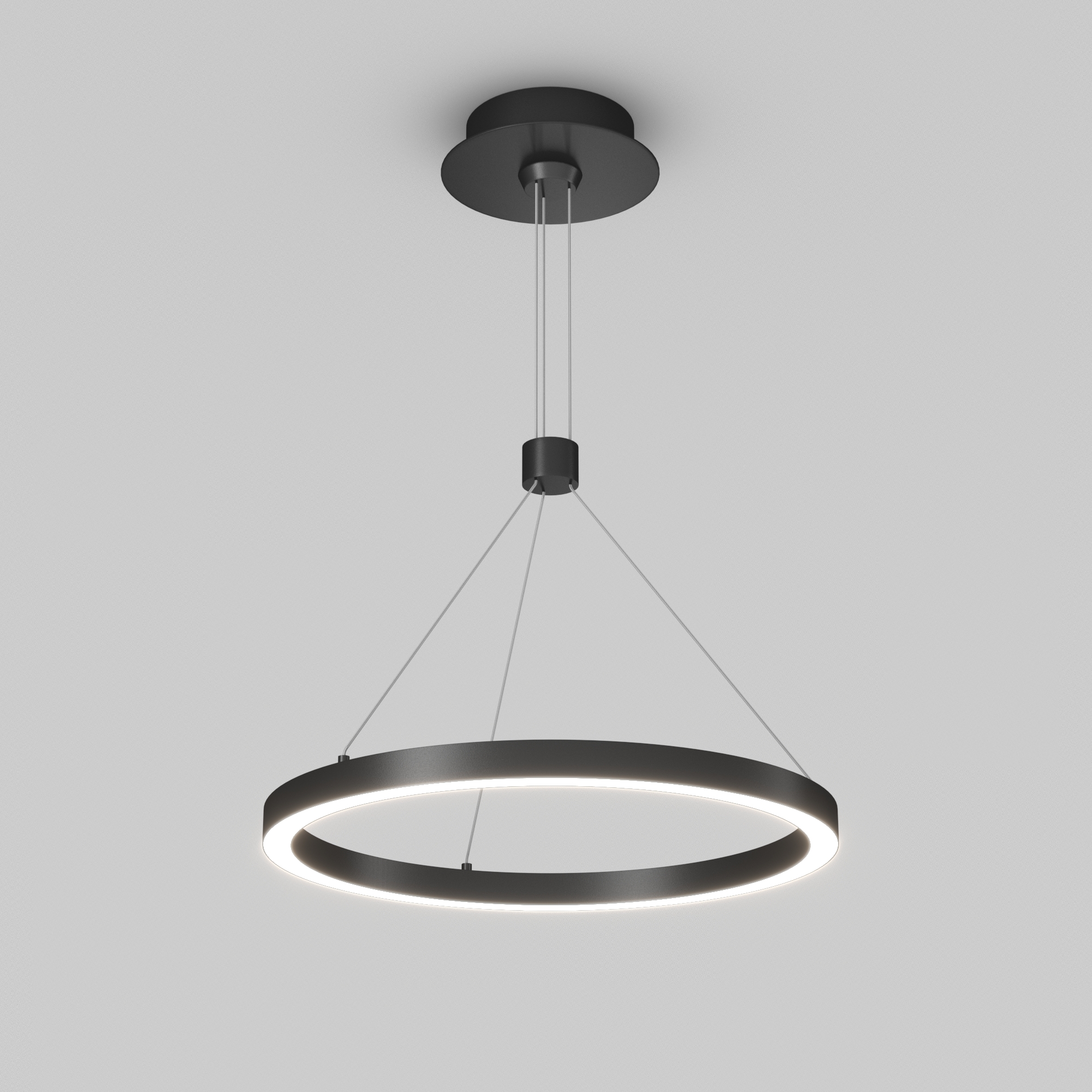 Подвесной светильник. Мощность 24 Вт, св. поток 1380 лм, 58 лм/Вт, дневной 4000 K, CRI>90, угол 120°, напряжение питания 230 В. Черный круглый корпус из алюминия, экран силикон, степень защиты IP20. Размер: диаметр 400 мм, высота 25 мм, ширина профиля 25 мм, размер чаши: диаметр 170 мм, высота 40 мм. Монтаж подвесной, длина подвеса 1200мм. Драйвер 33-40 В, 600 мА Пульсация <5%.