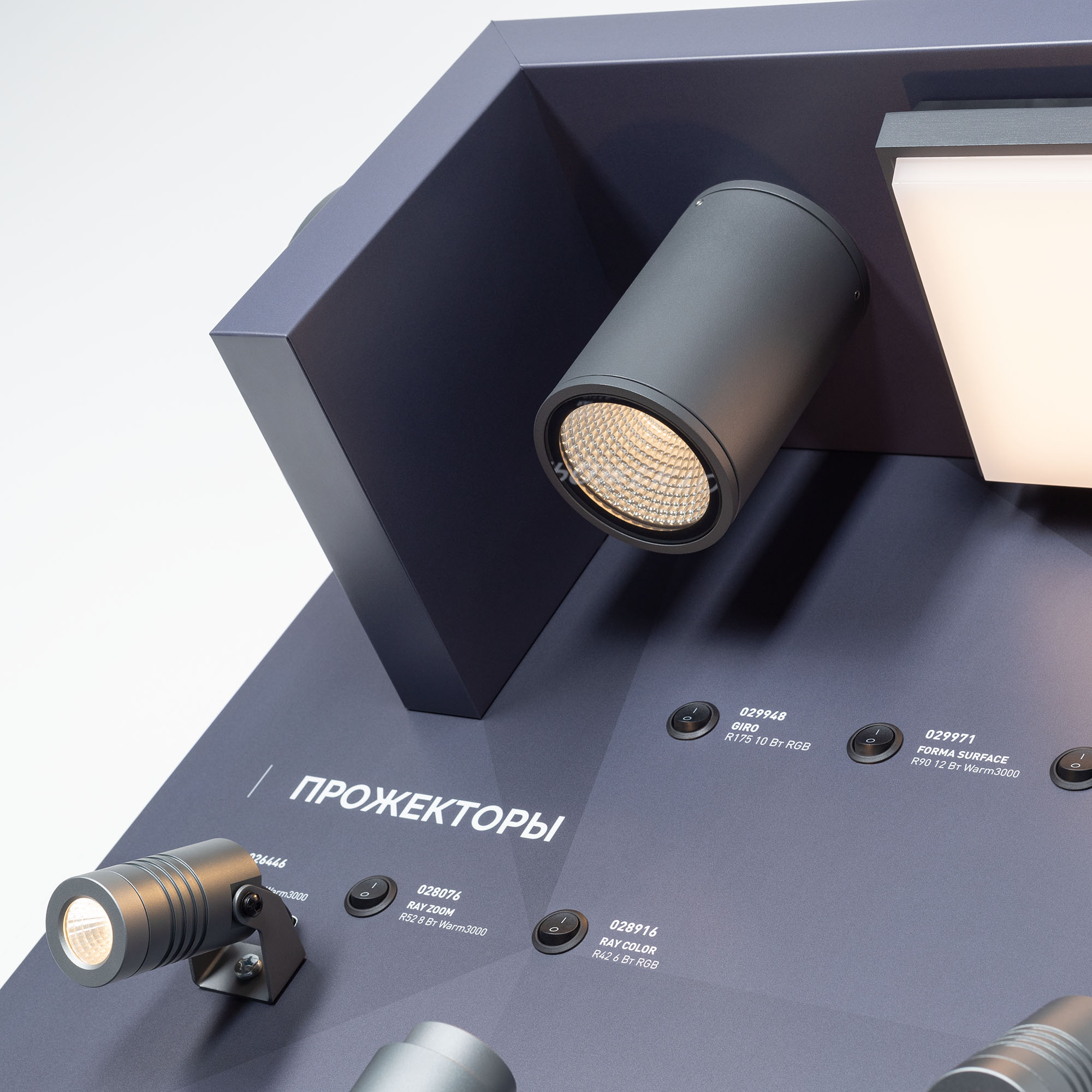 Стенд НАРУЖНОЕ ОСВЕЩЕНИЕ. Потолочные, напольные, грунтовые, подводные светильники и прожекторы. На стенде представлены потолочные светильники серий GIRO, FORMA SURFACE, AREA, прожекторы RAY, RAY ZOOM, RAY COLOR, светильники для грунта и пола серий GROUND, GROUND TILT, LINE TILT, GROUND SLIM, LUMILINE, подводные светильники и прожекторы серий WATER, AQUA COLOR.