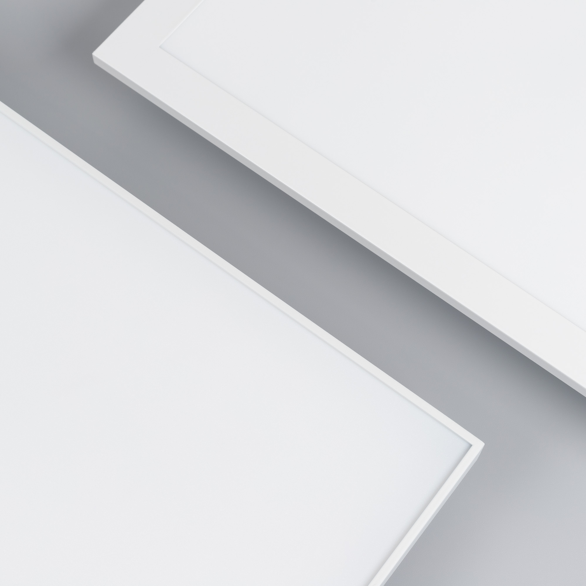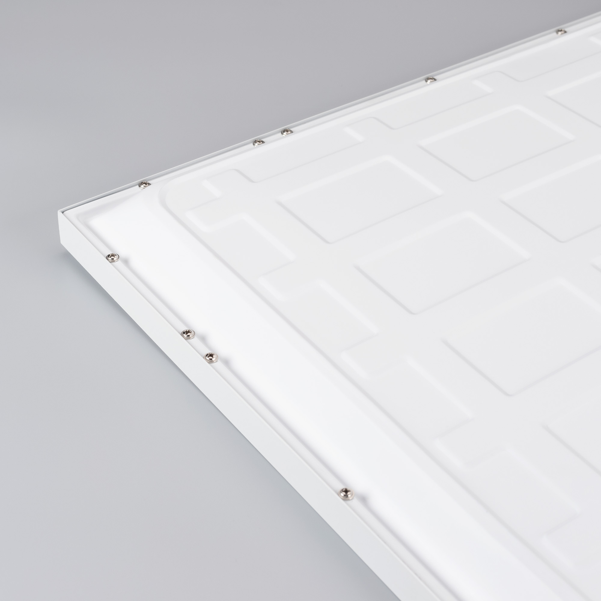 Светодиодная безрамочная панель с прямой засветкой (backlit). Мощность 40 Вт, св. поток 4000 лм, 100 лм/Вт, дневной 4000 K, CRI>90, угол 120°, напряжение питания 230 В. Белый квадратный корпус из алюминия, задняя крышка - сталь, экран PS, степень защиты IP40. Размер: длина 597 мм, ширина 597 мм, высота 38 мм. Монтаж встраиваемый, установочное отверстие длина 575 мм, ширина 575 мм. Драйвер 33-40 В, 1000 мА, пульсация <1%. Панель с рамкой 3,6 мм