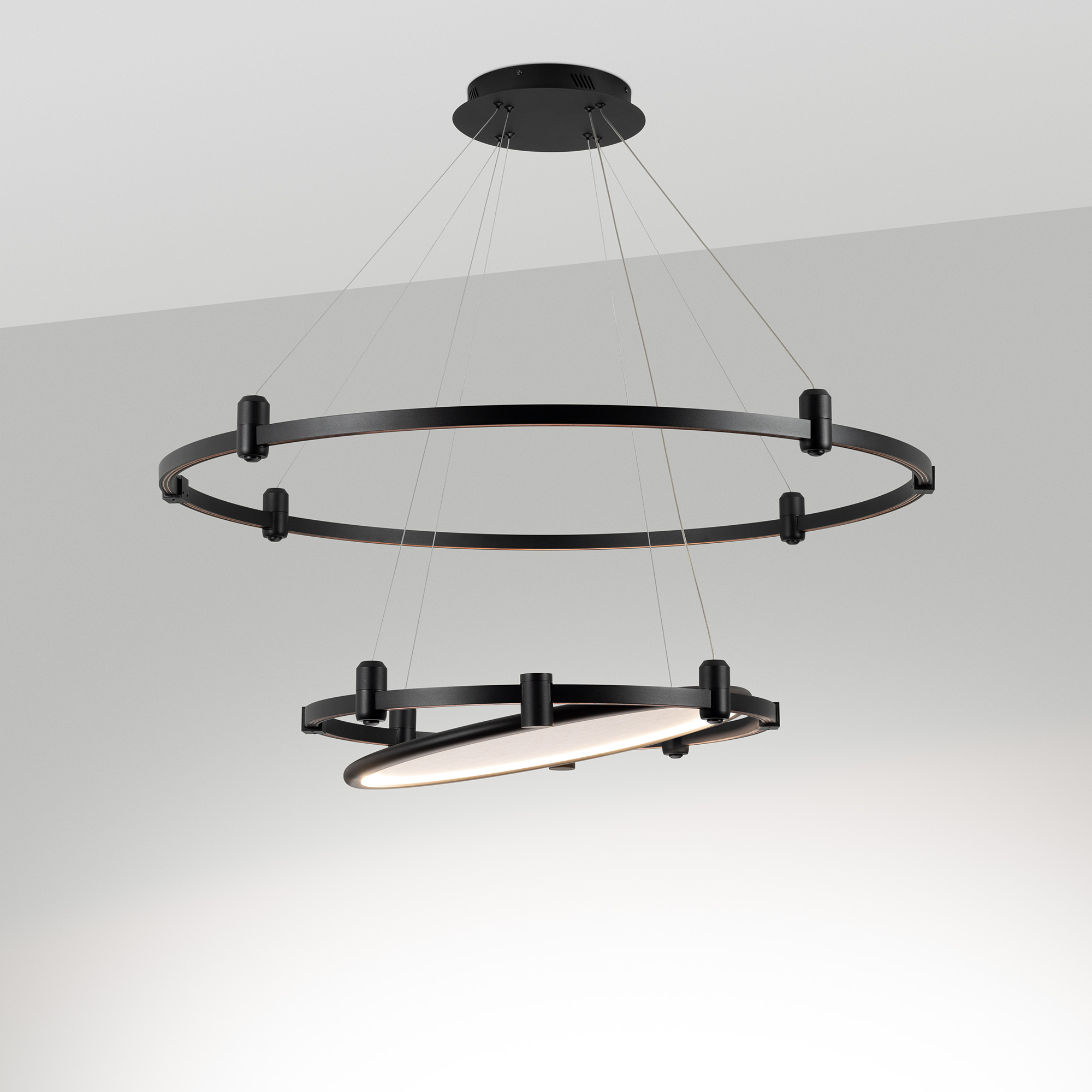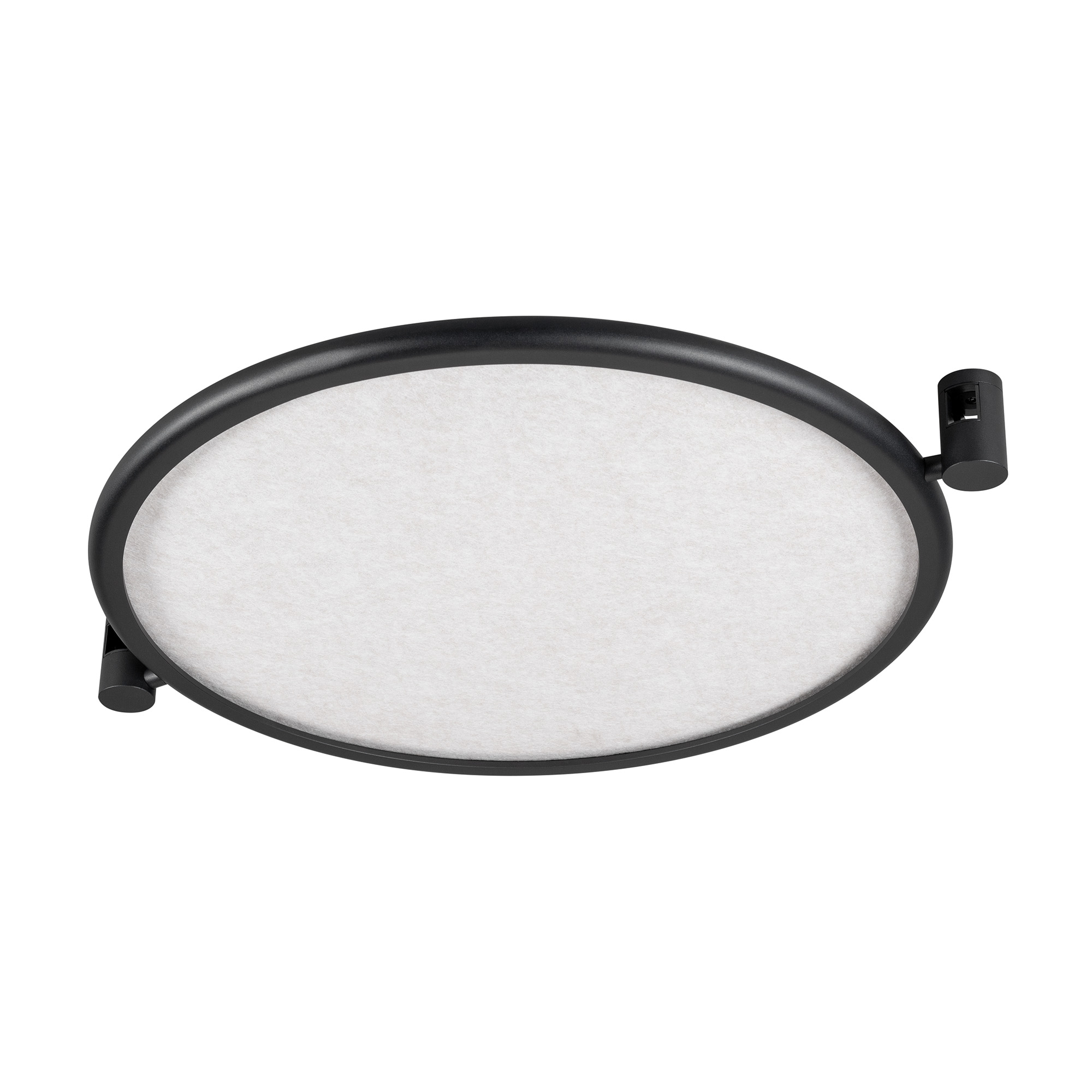 Светильник поворотный для треков APRIORI шириной 17 мм. Мощность 25 Вт, св. поток 269 лм, 10 лм/Вт, дневной 4000 K, CRI>90, угол 160°, напряжение питания 48 В. Черный круглый корпус из алюминия с бежевым акустическим материалом, степень защиты IP20. Размер: длина 820 мм, ширина 780 мм, высота 55 м. Монтаж на трек APRIORI 17 мм. Угол поворота корпуса 350°. Пульсация <1%. Возможно диммирование по ШИМ (PWM) или не адресное управление при использовании диммируемого драйвера Dali, 0-10V, TRIAC.