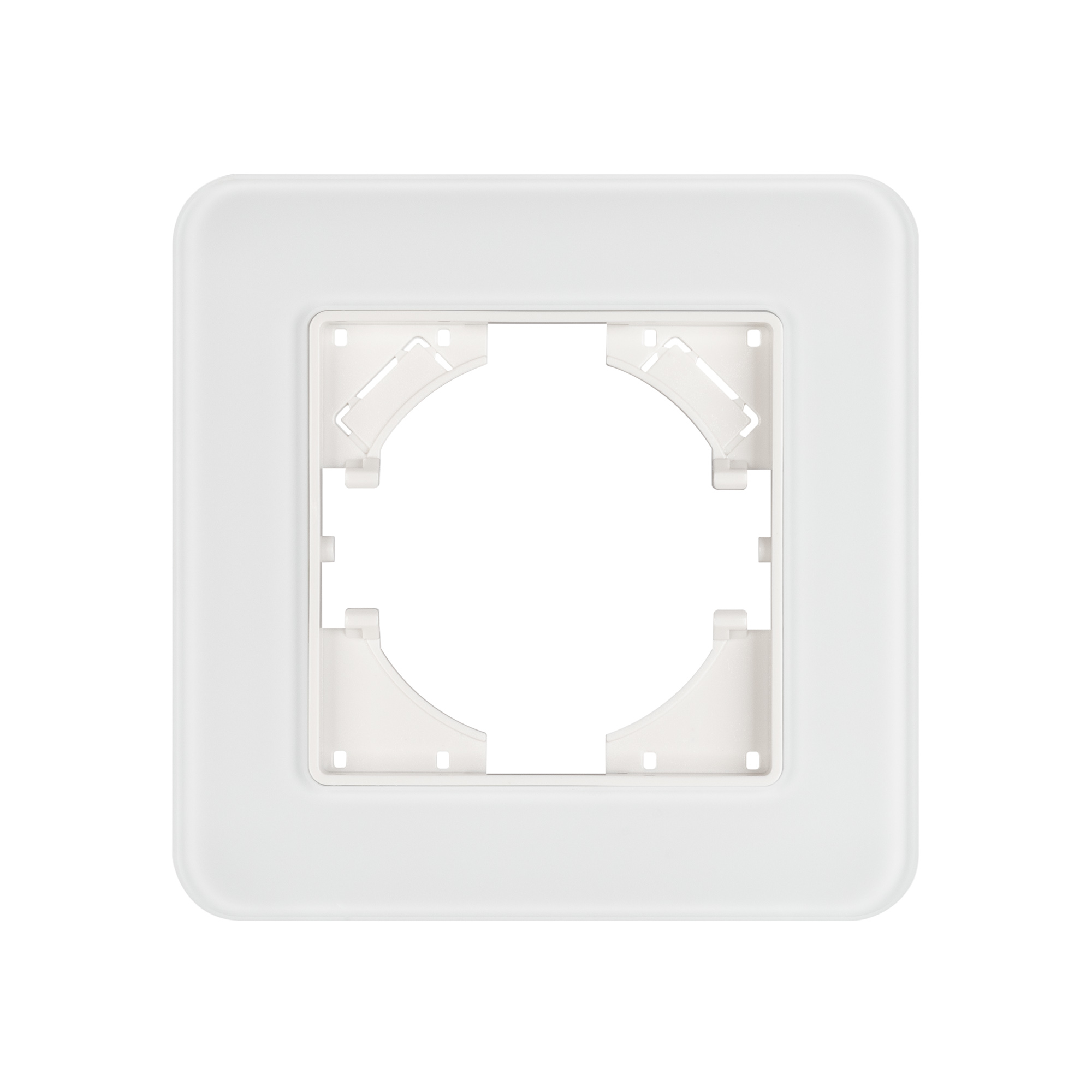 Рамка стеклянная на 1 пост, под встраиваемый механизм. Цвет - белый. Уровень герметичности IP20. Ориентация монтажа - горизонтальная (основным ориентиром служат посадочные выступы для накладки механизма).