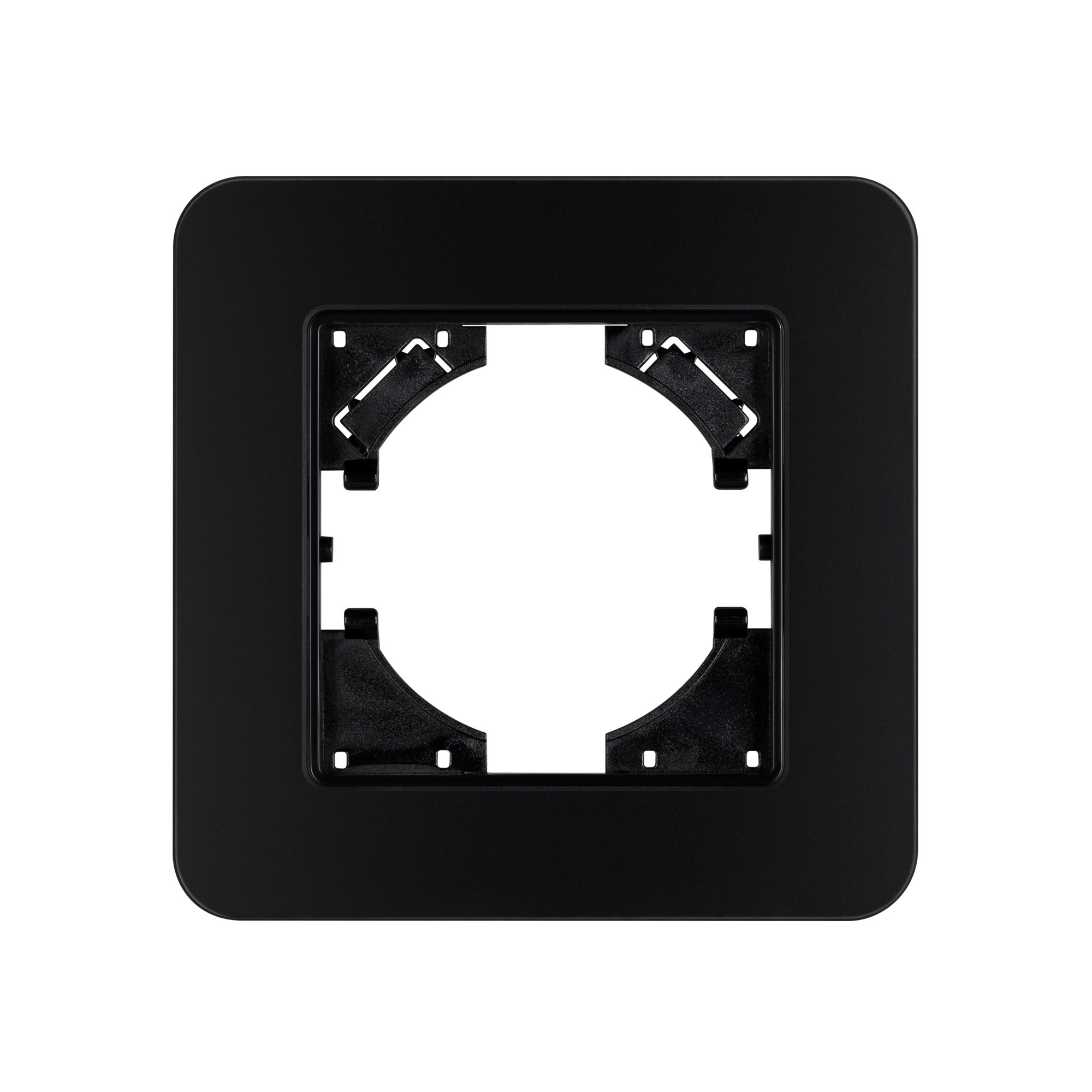 Рамка стеклянная на 1 пост, под встраиваемый механизм. Цвет - черный. Уровень герметичности IP20. Ориентация монтажа - горизонтальная (основным ориентиром служат посадочные выступы для накладки механизма).