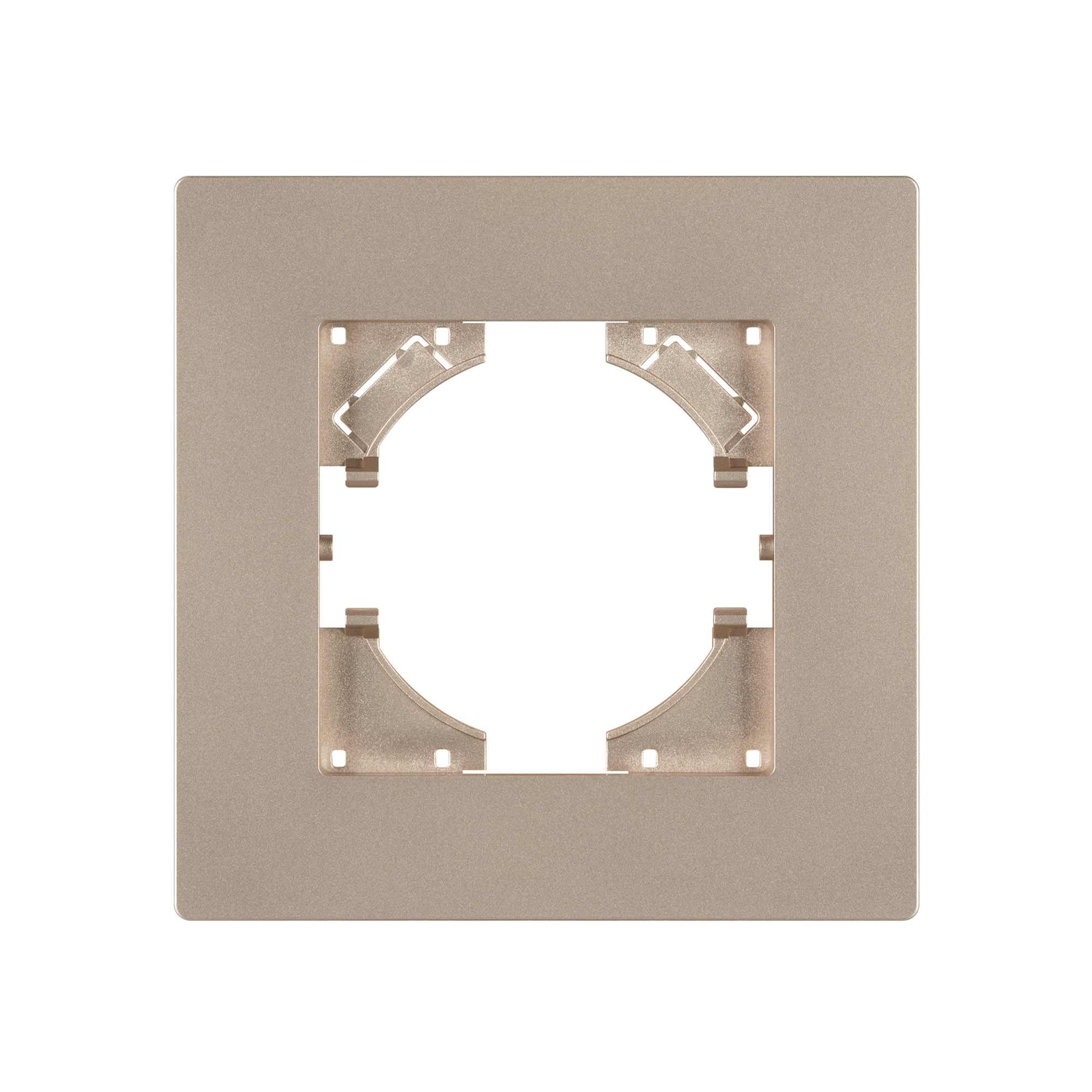Рамка пластиковая на 1 пост, под встраиваемый механизм. Цвет - золотой. Уровень герметичности IP20. Ориентация монтажа - горизонтальная (основным ориентиром служат посадочные выступы для накладки механизма).