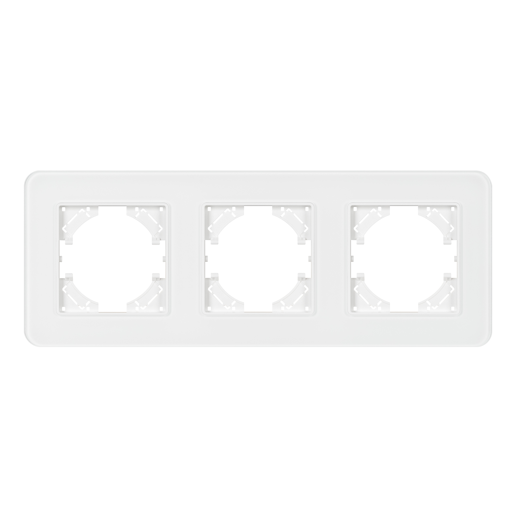 Рамка стеклянная на 3 поста, под встраиваемый механизм. Цвет - белый. Уровень герметичности IP20. Ориентация монтажа - горизонтальная (основным ориентиром служат посадочные выступы для накладки механизма).
