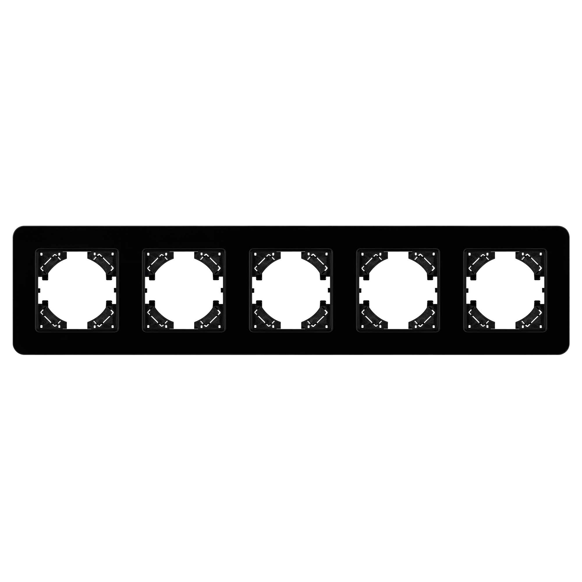 Рамка стеклянная на 5 постов, под встраиваемый механизм. Цвет - черный. Уровень герметичности IP20. Ориентация монтажа - горизонтальная (основным ориентиром служат посадочные выступы для накладки механизма).