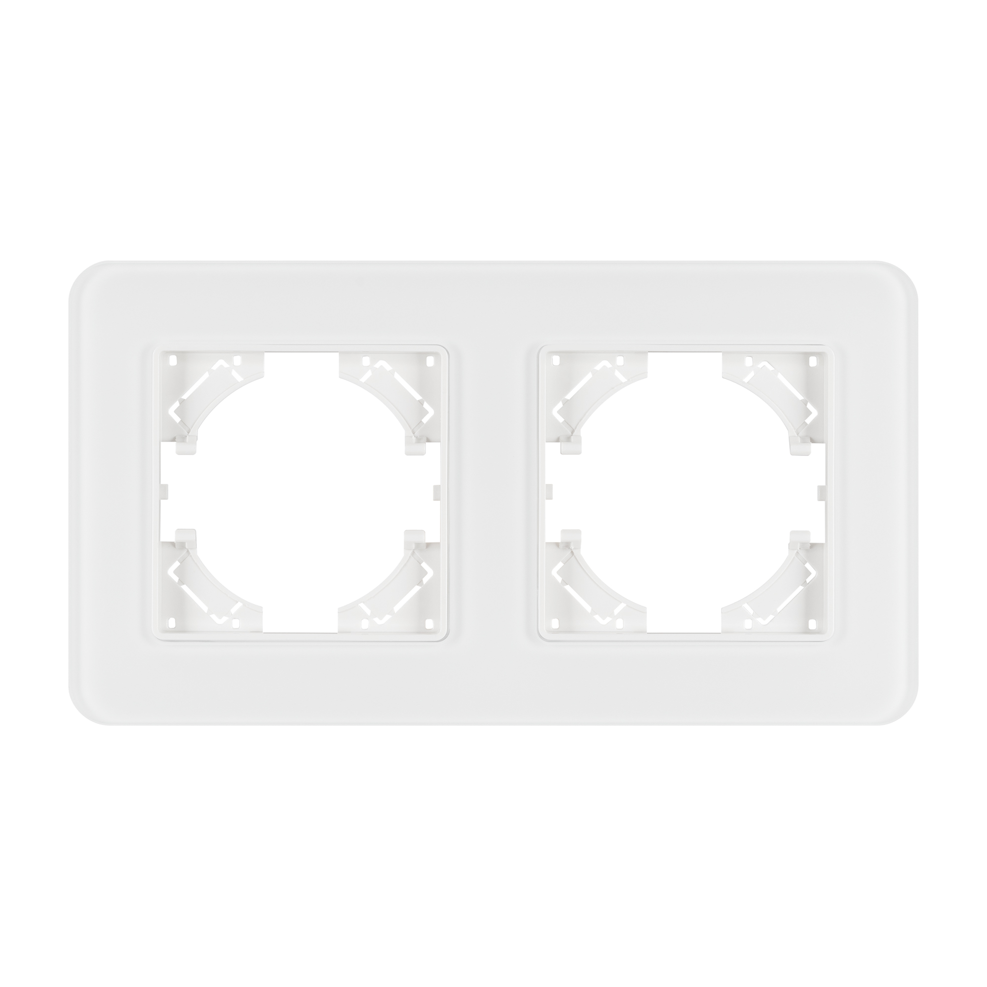 Рамка стеклянная на 2 поста, под встраиваемый механизм. Цвет - белый с Soft-Touch покрытием. Уровень герметичности IP20. Ориентация монтажа - горизонтальная (основным ориентиром служат посадочные выступы для накладки механизма).