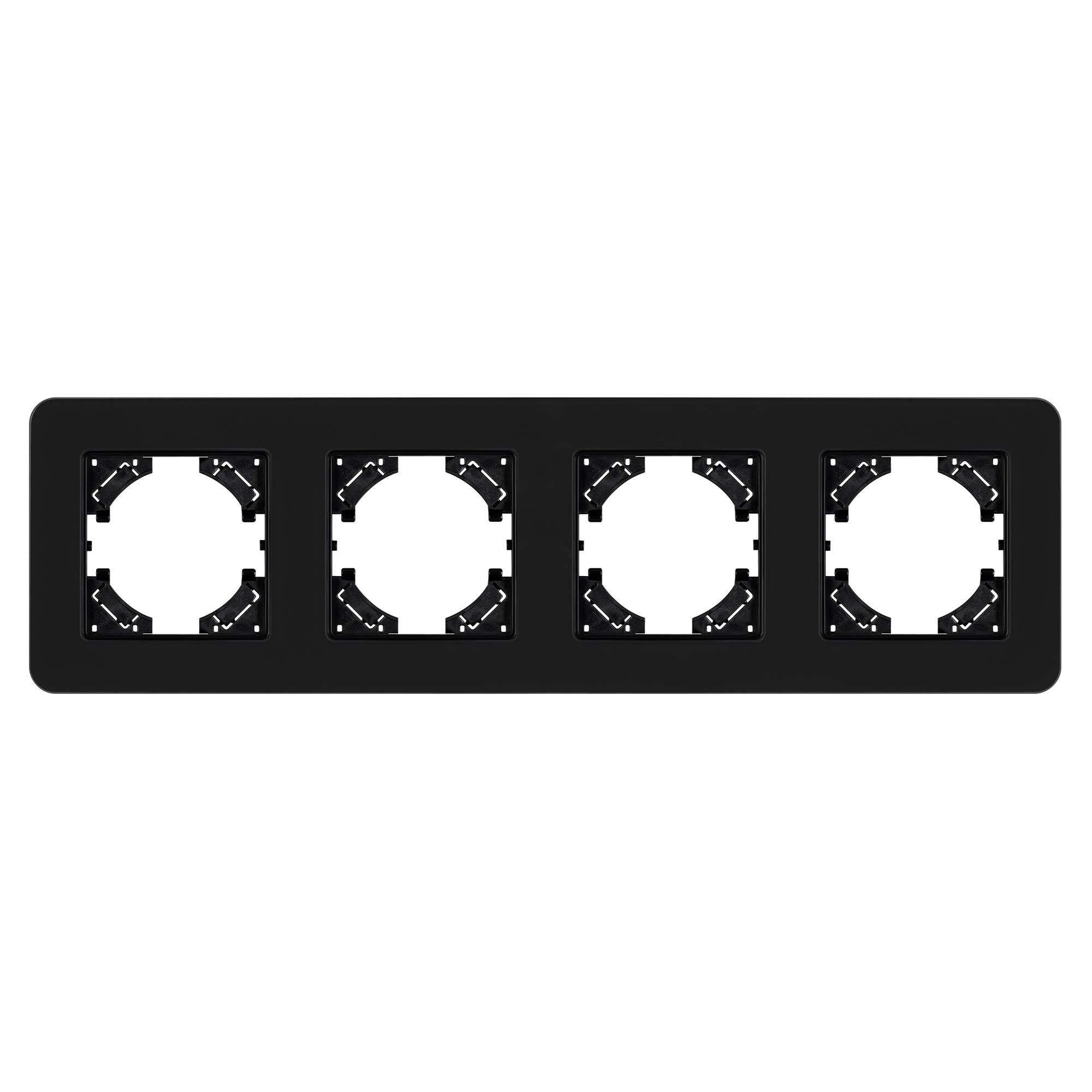 Рамка стеклянная на 4 поста, под встраиваемый механизм. Цвет - черный с Soft-Touch покрытием. Уровень герметичности IP20. Ориентация монтажа - горизонтальная (основным ориентиром служат посадочные выступы для накладки механизма). Габаритные размеры: длина 299 мм, ширина 86 мм, высота 7 мм. Гарантийный срок 12 мес.