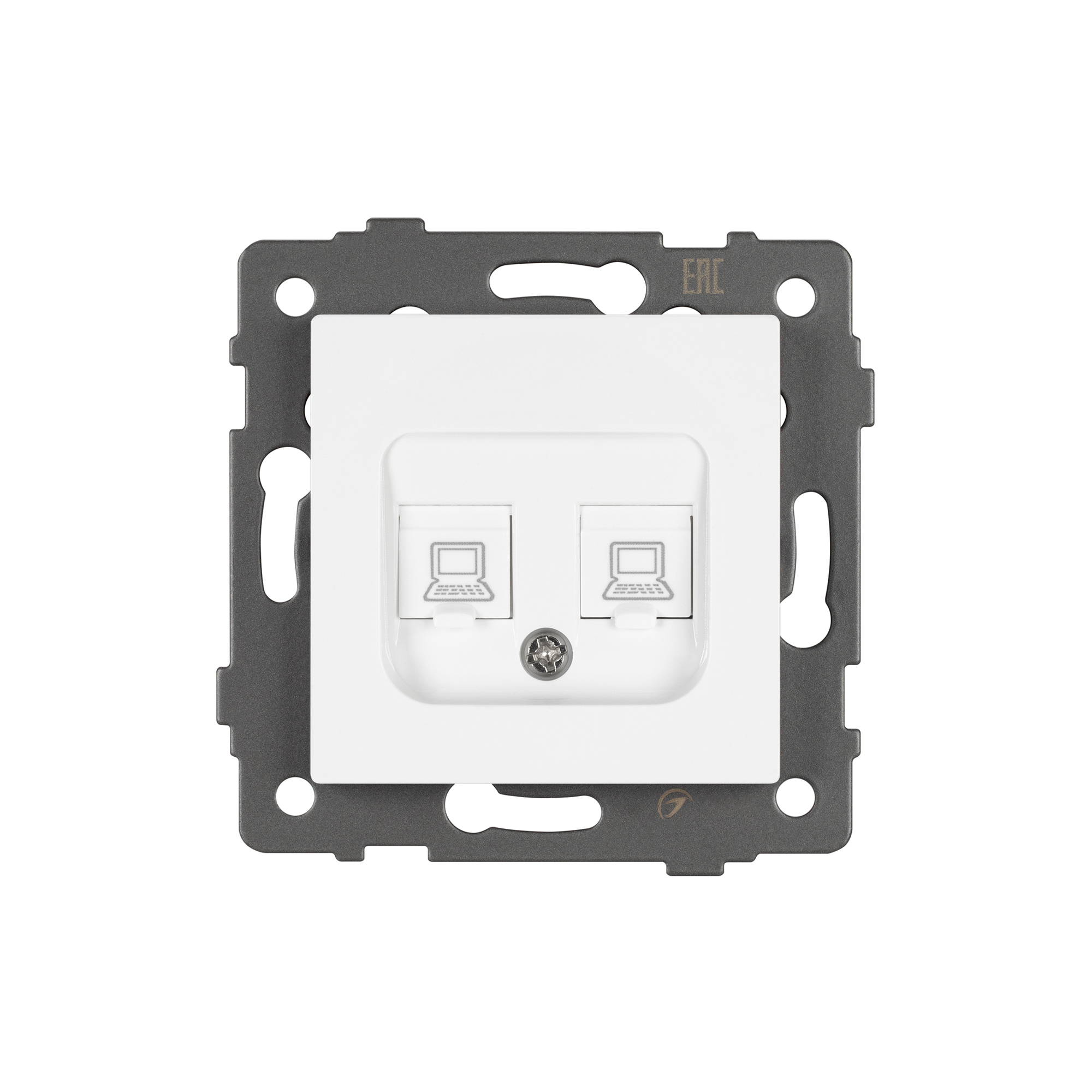 Механизм компьютерной розетки на 2 поста 6-й категории. Цвет - белый. Без фронтальной рамки. Уровень пылевлагозащиты IP20. Тип подключаемого разъема - Rj45. Розетка устанавливается в стандартный круглый подрозетник.
