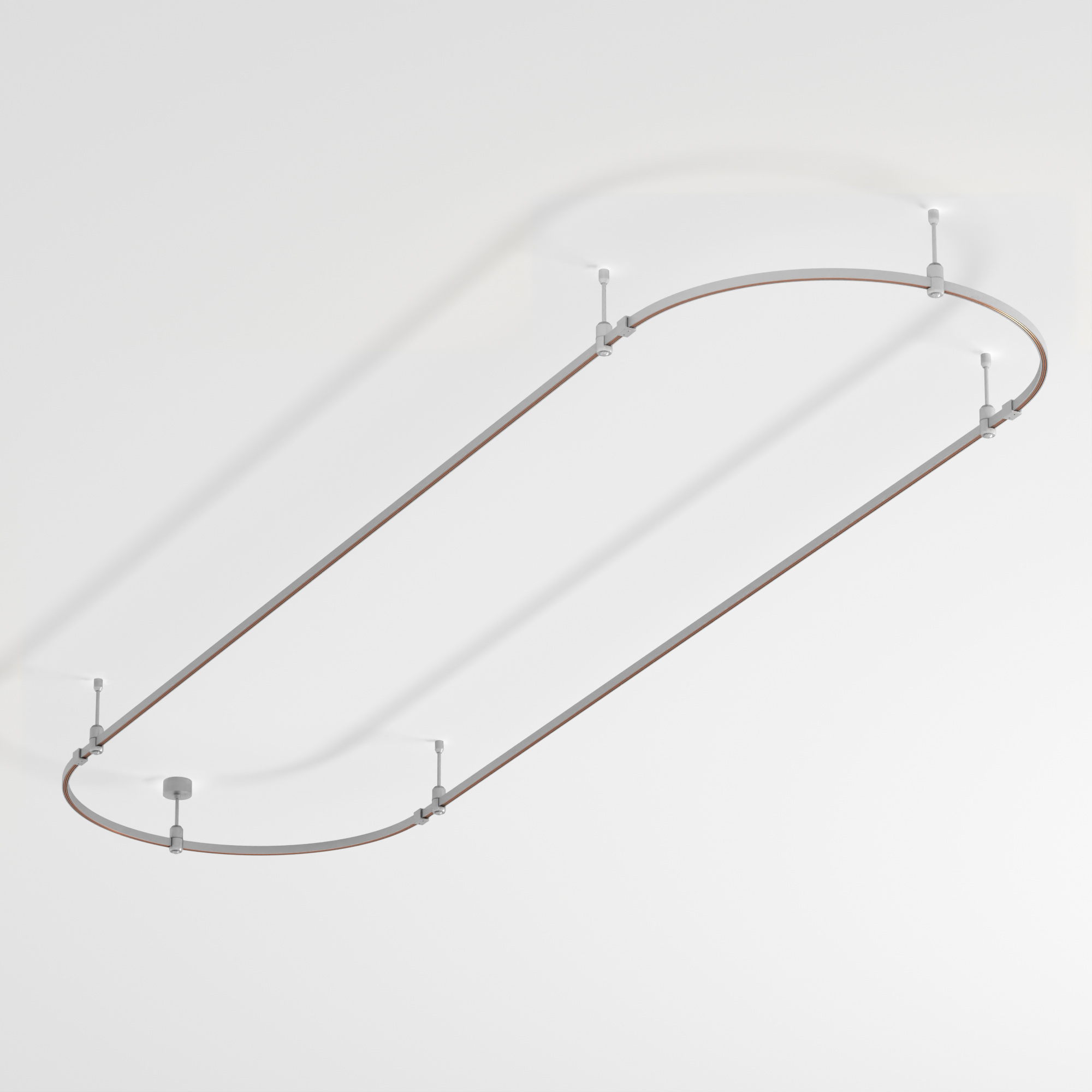Подвесная конструкция APRIORI, форма овал. В комплекте треки с аксессуарами и жесткими подвесами длиной 200мм. Размер ДxШxВ: 3000x1000x22мм. Монтируется подвесным способом. Шинопровод рассчитан на работу с безопасным напряжением DC48В. Изготавливается из алюминия, анодированного в цвет титан. Светильники и источники питания приобретаются отдельно.