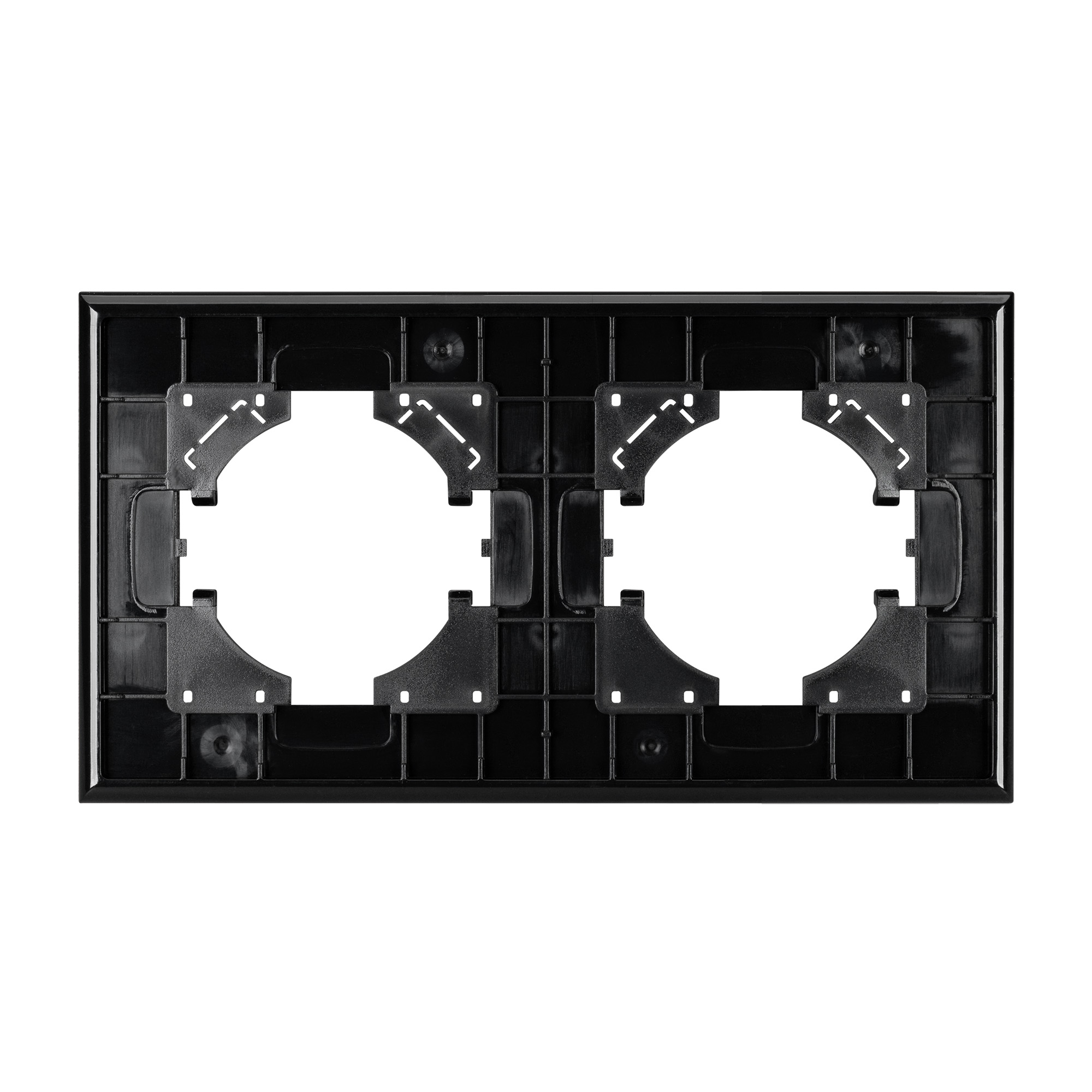 Рамка пластиковая на 2 поста, под встраиваемый механизм, с накладкой из натурального дерева. Цвет накладки - натуральное дерево*, цвета рамки - черный. Уровень герметичности IP20. Ориентация монтажа - горизонтальная (основным ориентиром служат посадочные выступы для накладки механизма).