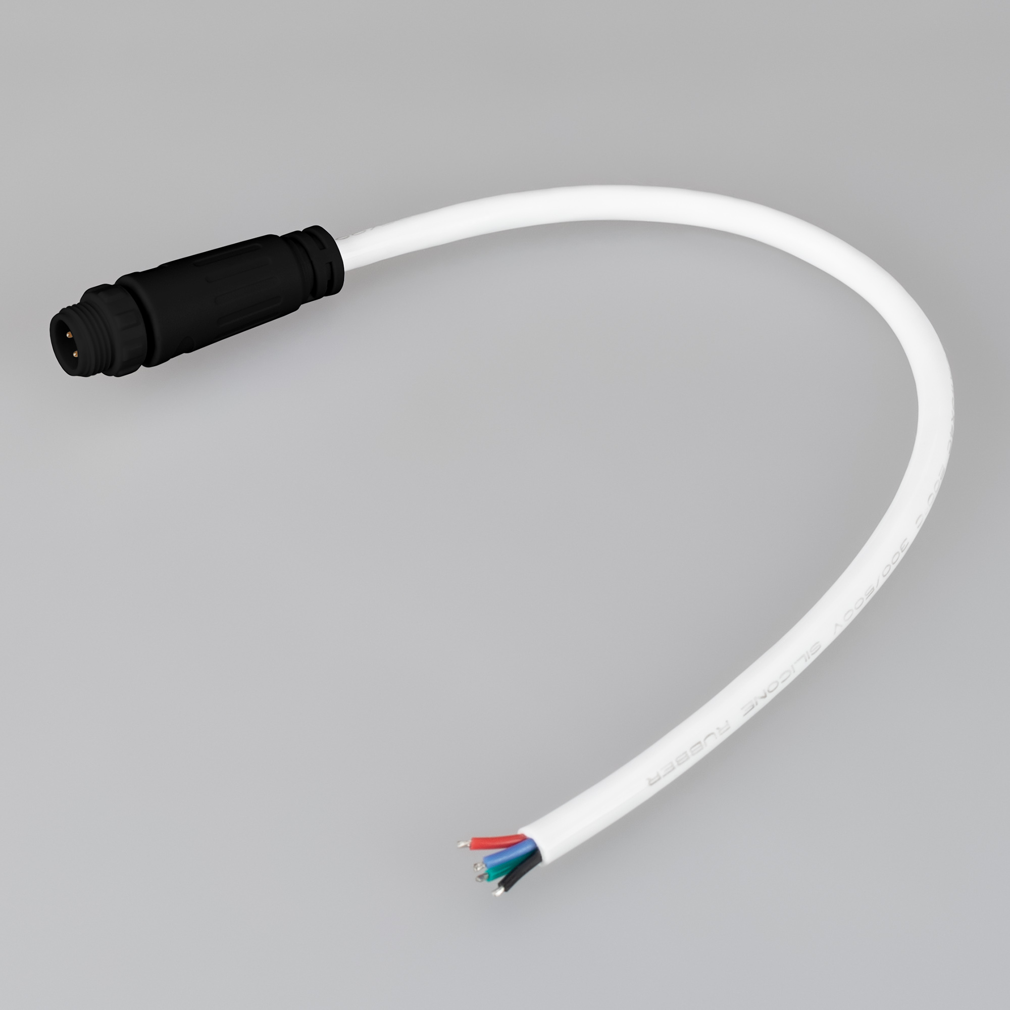 Герметичный Male (папа) коннектор питания на проводе для гибкого неона MOONLIGHT SPI и DMX512, цвет черный, цвет провода белый, IP67.