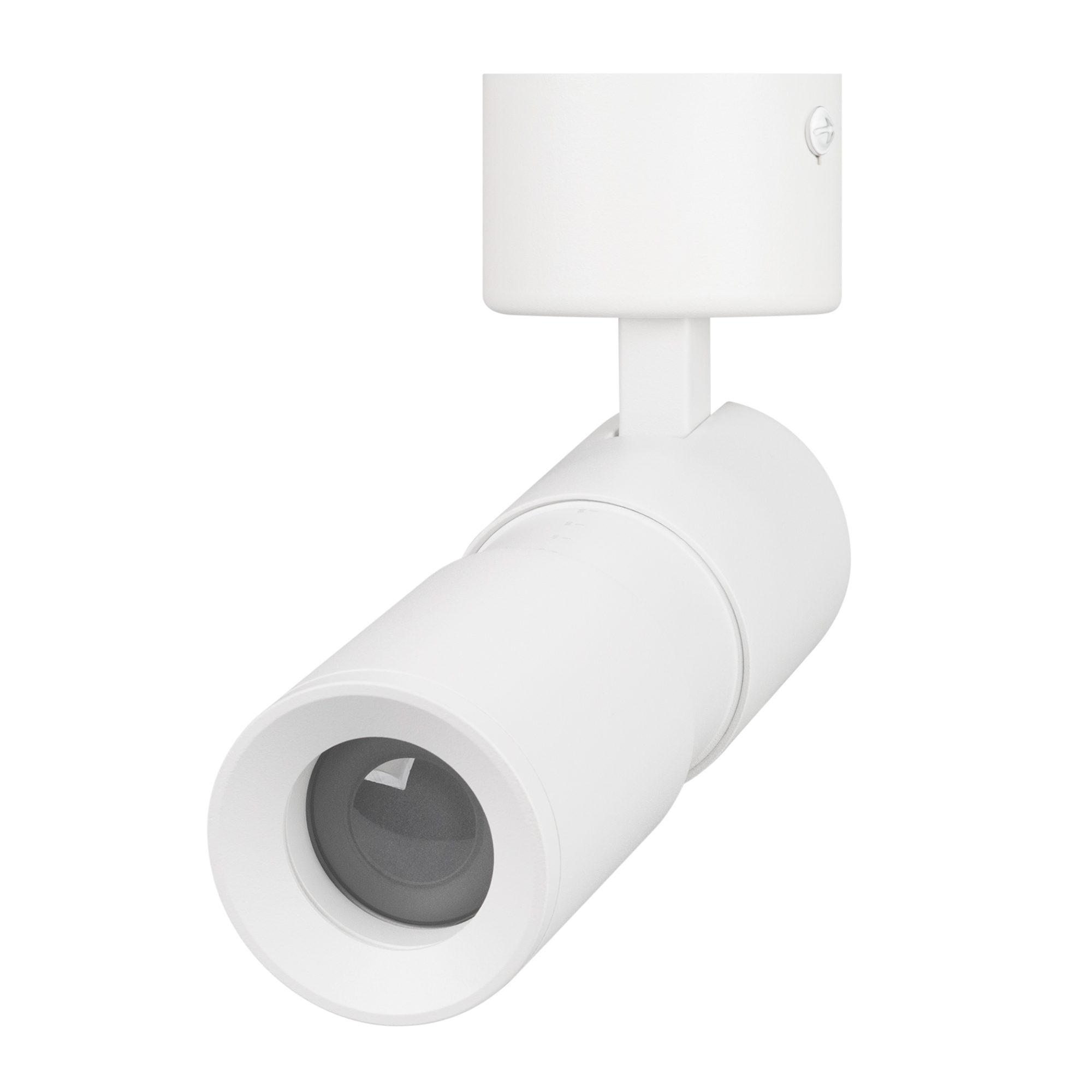 Накладной откидной поворотный светильник, 12Вт. Цвет свечения ТЕПЛЫЙ 3000K, световой поток 720 лм, 60 лм/Вт, регулируемый угол 8-80°, CRI>90. Корпус круглый, металл, цвет белый, IP20. Размеры DxHxL Ø55x132~163,5 мм. Размер чаши Ø60,7x33,5 мм. Входное напряжение AC220-240V, мощность 12Вт. Драйвер встроенный (24-40V, 300 мА). Пульсация <1%.