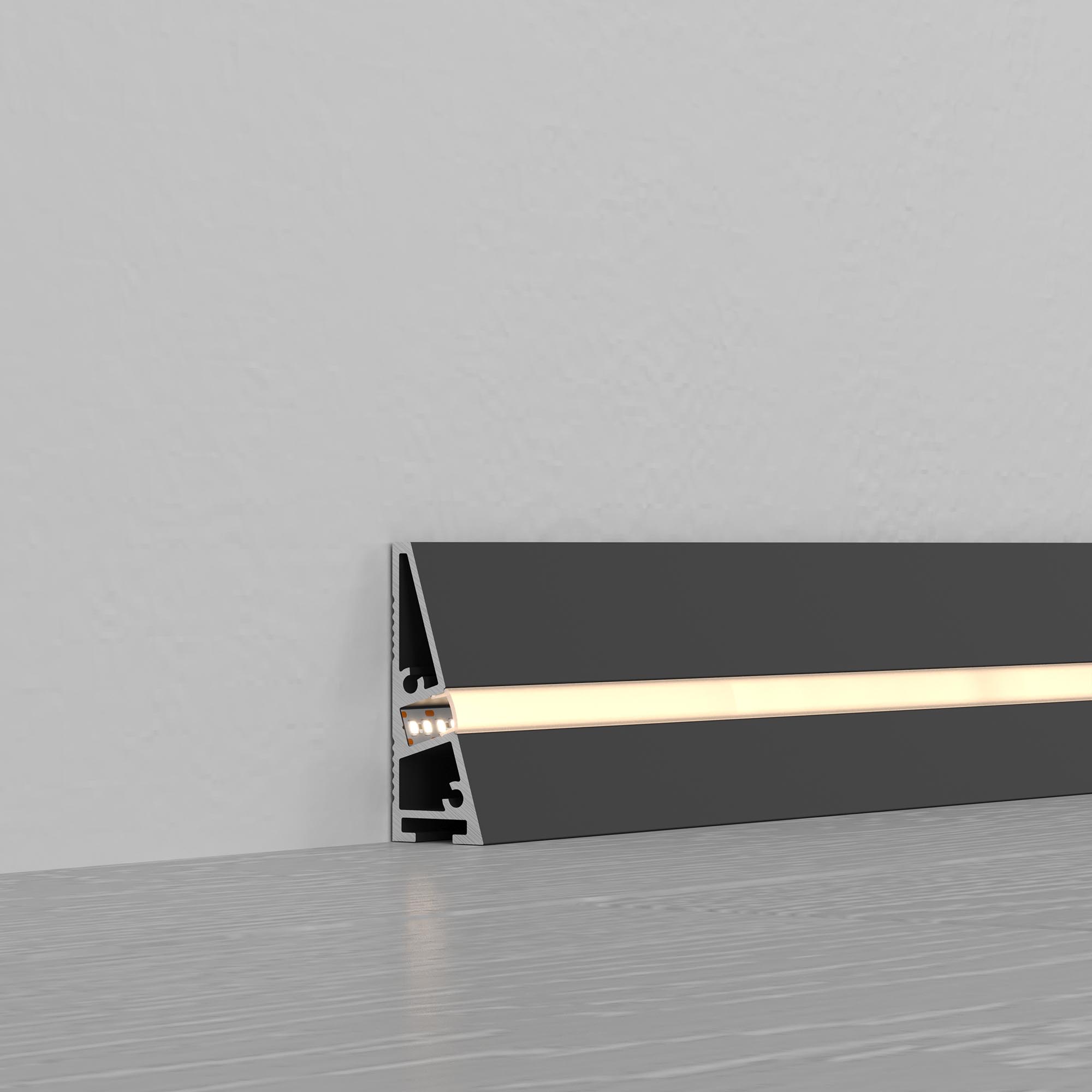 Накладной алюминиевый анодированный профиль-плинтус черного цвета для контурной подсветки стены. Габаритные размеры профиля составляют 2000 мм в длину, 15 мм в ширину и 40 мм в высоту. Площадка для установки светодиодных лент позволяет использовать ленту шириной до 5 мм и мощностью до 26,5 Вт/м. Это обеспечивает гибкость в выборе светодиодных лент и создает потрясающие световые решения. Экран, заглушки и другие аксессуары не включены в комплект и приобретаются отдельно. Цена указана за 1 метр профиля. Отличное решение для создания современных световых проектов.