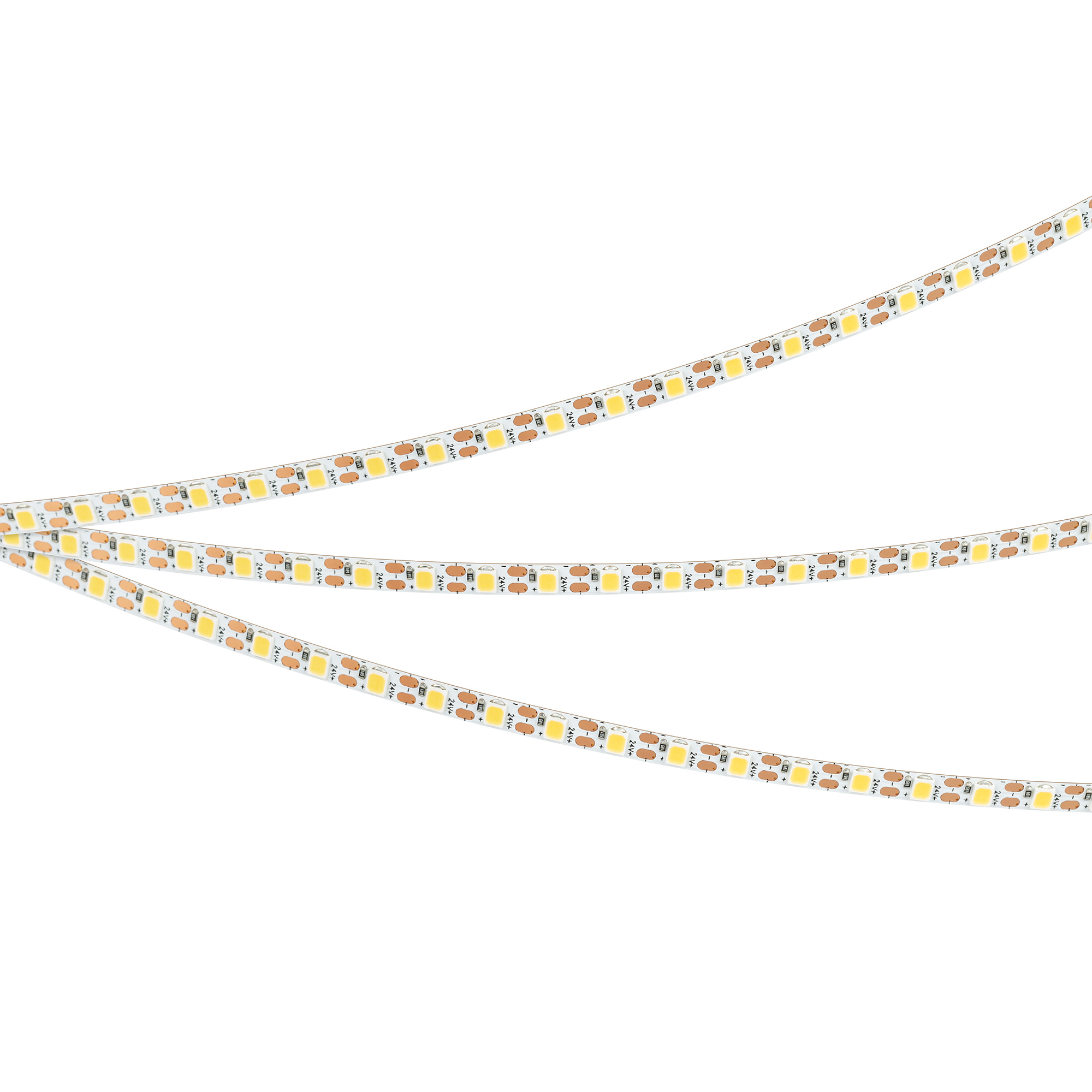 Светодиодная лента FC серии A120 с малым шагом резки. Светодиоды SMD 2835, 120 шт/м, белая плата, ширина 5 мм, скотч 3M. Цвет ТЕПЛЫЙ 3000K, индекс цветопередачи CRI>90, угол 120°. Питание 24 В, мощность 10 Вт/м (50 Вт на 5 м). Размеры 5000x5x1.2 мм. Мин. отрезок 8.33 мм, 1 светодиод. Цена за 1 м. Обязательна установка на профиль.