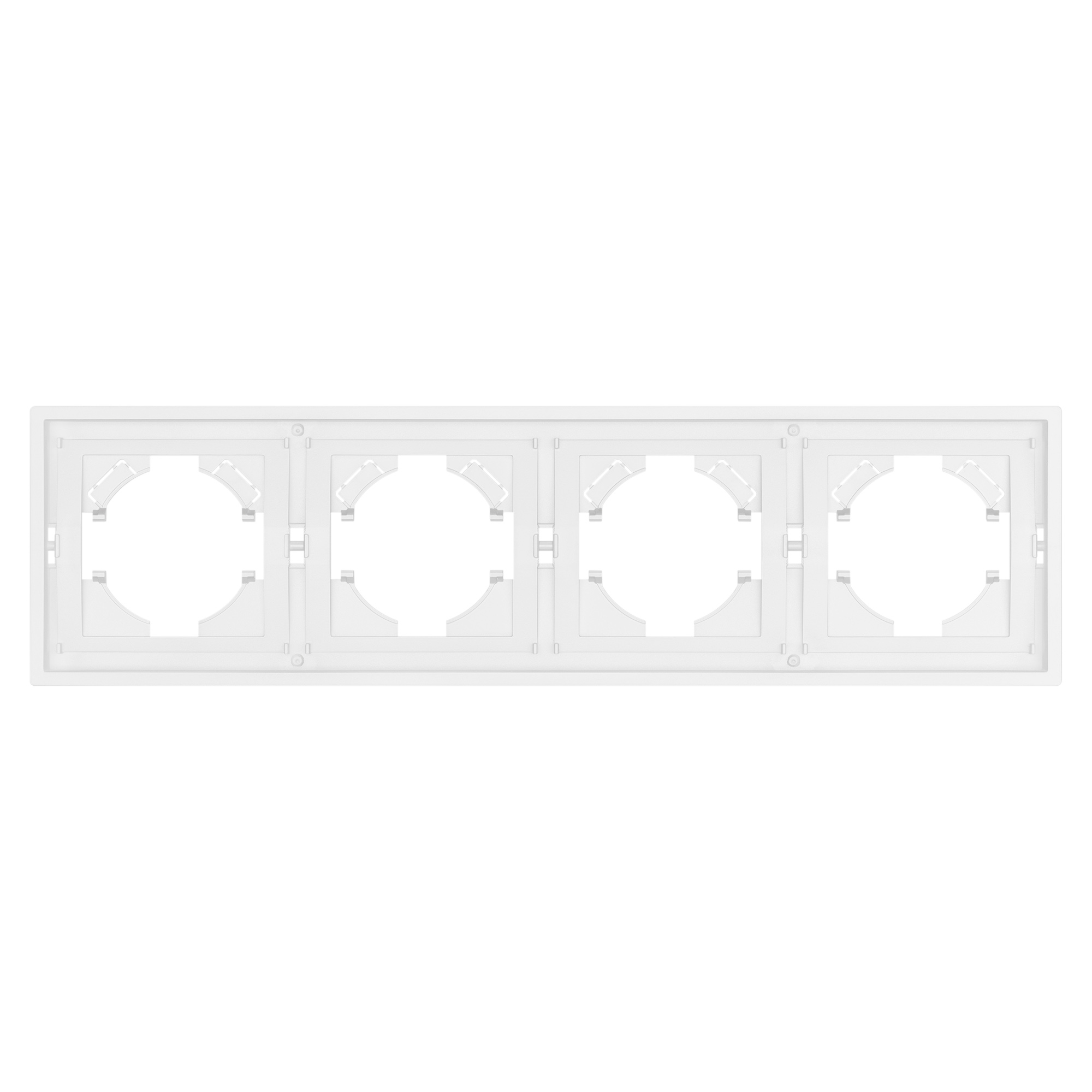 Рамка пластиковая на 4 поста, под встраиваемый механизм. Цвет - белый. Уровень герметичности IP20. Ориентация монтажа горизонтальная. Габаритные размеры: длина 294 мм, ширина 80 мм, высота 9 мм. Гарантийный срок 12 мес.
