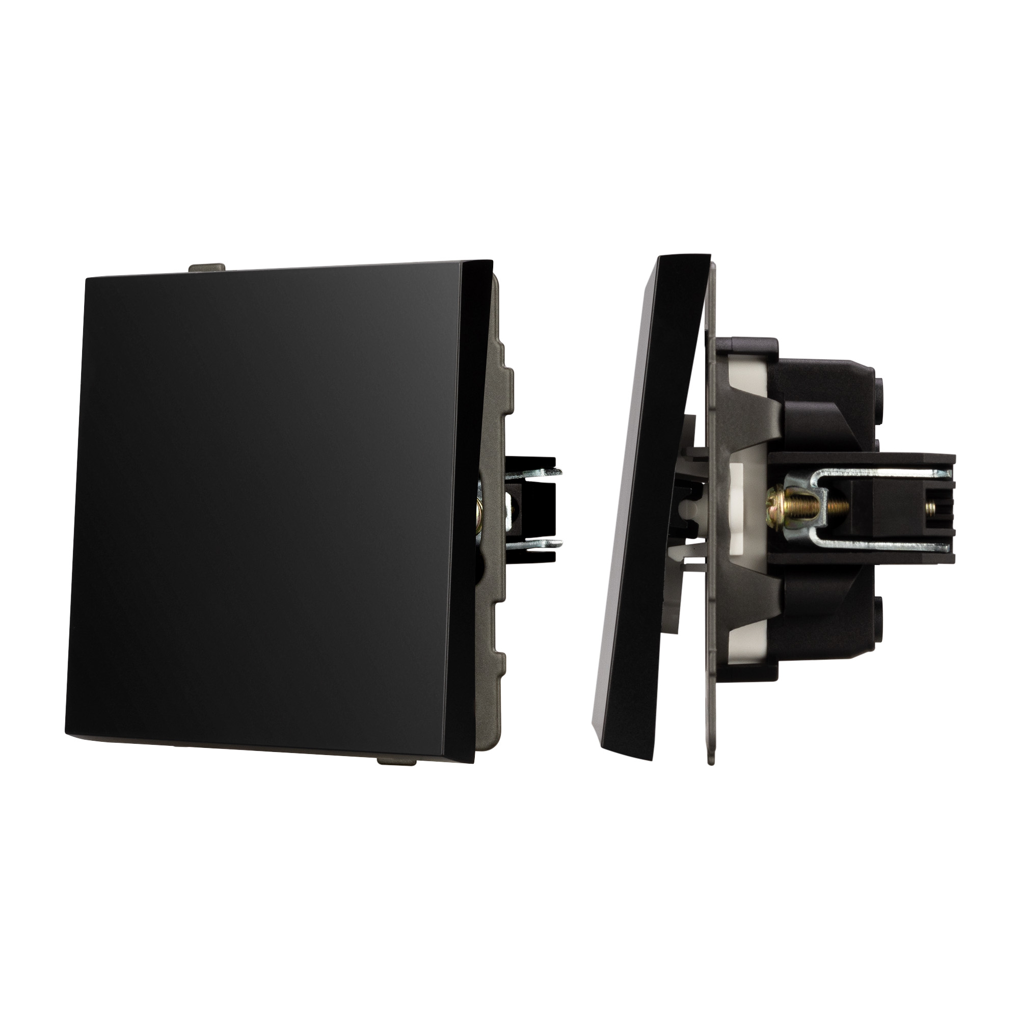 Механизм выключателя света совместим с рамками серии TENDO, создает утонченный минималистичный вид. Скрытый тип монтажа позволяет гармонично встроить в интерьер любого современного дизайн-проекта. Видимая часть механизма выполнена из высококачественного пластика черного цвета и имеет матовое покрытие. Контактная часть присоединяется при помощи винтовых зажимов, позволяя надежно подсоединить механизм выключателя к питающим элементам. А усиленные распорные лапки двойного захвата надежно фиксируют механизм в установочном подрозетнике круглого сечения диаметром 60мм. На каждой стороне суппорта размещены фиксирующие элементы, позволяющие комбинировать механизмы в системы до 5шт горизонтально, под соответствующую рамку.
