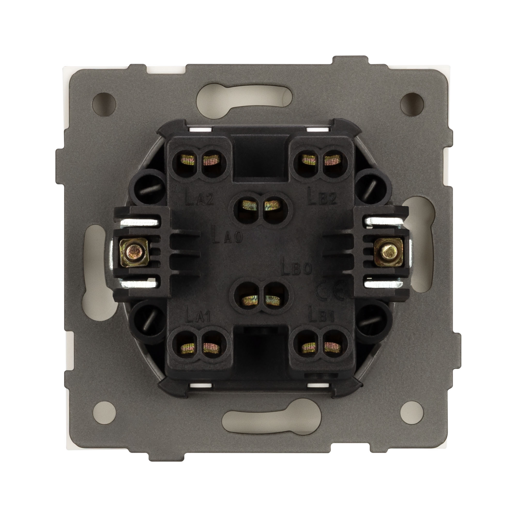 Механизм выключателя света совместим с рамками серии TENDO, создает утонченный минималистичный вид. Скрытый тип монтажа позволяет гармонично встроить в интерьер любого современного дизайн-проекта. Видимая часть механизма выполнена из высококачественного пластика золотого цвета и имеет матовое покрытие. Контактная часть присоединяется при помощи винтовых зажимов, позволяя надежно подсоединить механизм выключателя к питающим элементам. А усиленные распорные лапки двойного захвата надежно фиксируют механизм в установочном подрозетнике круглого сечения диаметром 60мм. На каждой стороне суппорта размещены фиксирующие элементы, позволяющие комбинировать механизмы в системы до 5шт горизонтально, под соответствующую рамку.