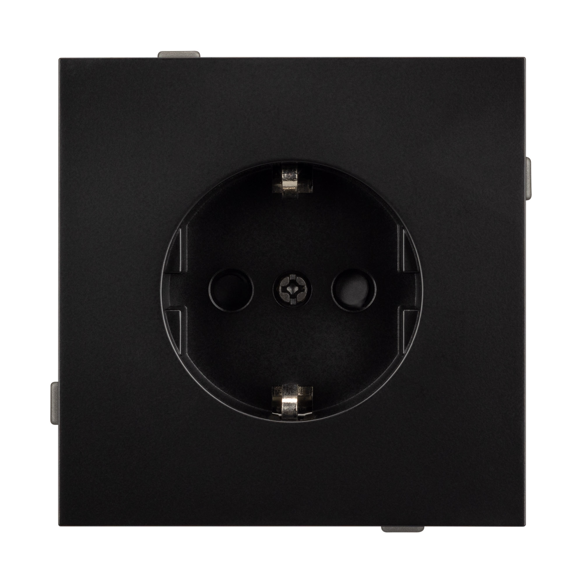 Механизм розетки с заземление совместим с рамками серии TENDO, создает утонченный минималистичный вид. Скрытый тип монтажа позволяет гармонично встроить в интерьер любого современного дизайн-проекта. Видимая часть механизма выполнена из высококачественного пластика черного цвета и имеет матовое покрытие. Розетка оснащена защитными шторками, которые защищают механизм устройства от повреждений и загрязнений, а также обеспечивают безопасное использование для каждого пользователя. Металлический суппорт окрашен порошковой краской в несколько слоев и выполнен из металла толщиной 1,5мм, что обеспечивает безопасность и уверенность в установке. А усиленные распорные (монтажные) лапки надежно фиксируют механизм в стандартном установочном подрозетнике. На каждой стороне суппорта размещены фиксирующие элементы, позволяющие комбинировать механизмы в системы до 5шт горизонтально, под соответствующую рамку.