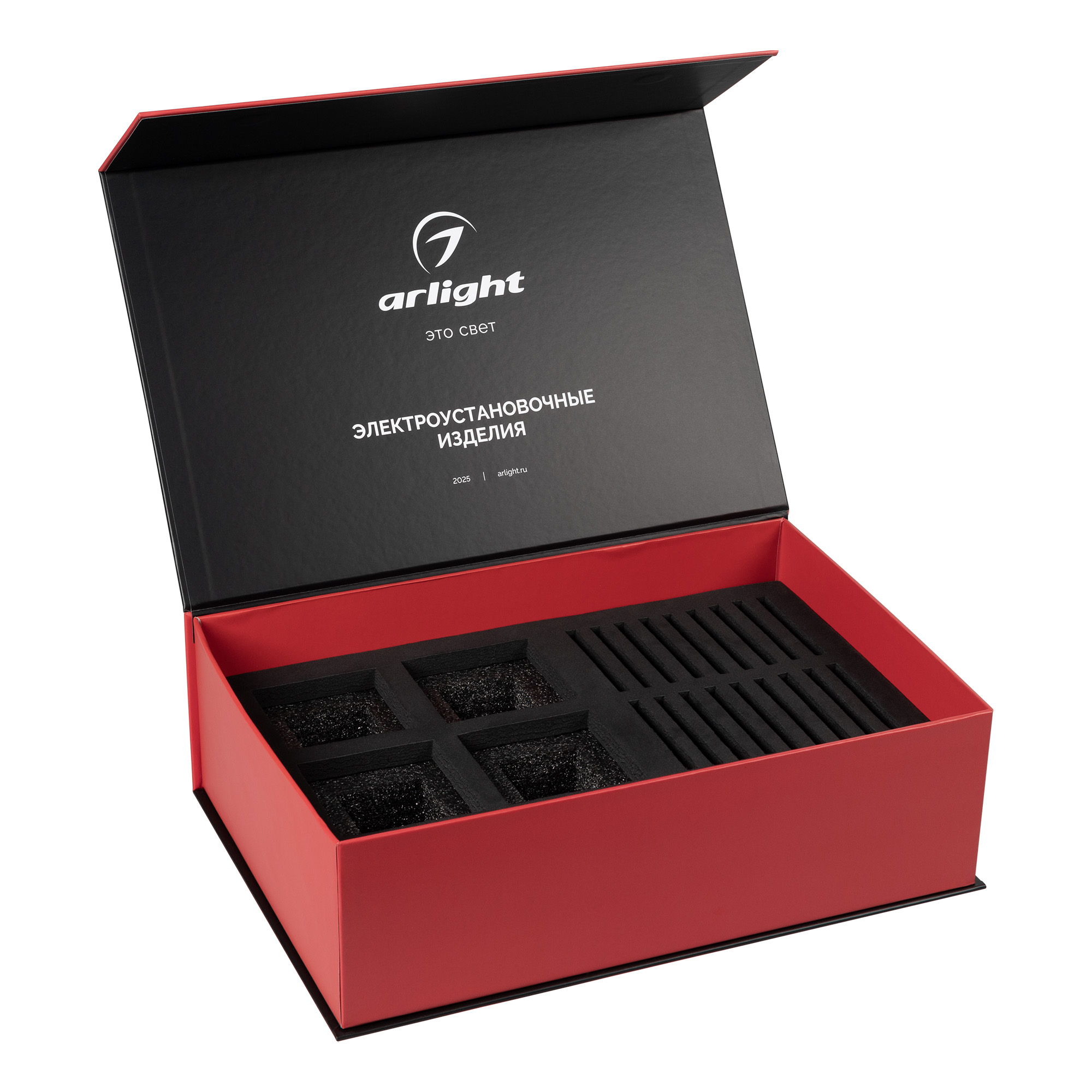 Демо-кейс для демонстрации продукции всех доступных серий ЭУИ. Механизмы розеток и выключателей, а так же декоративные рамки в комплект не входят. Материал: прессованный картон, вспененный полиуретан.