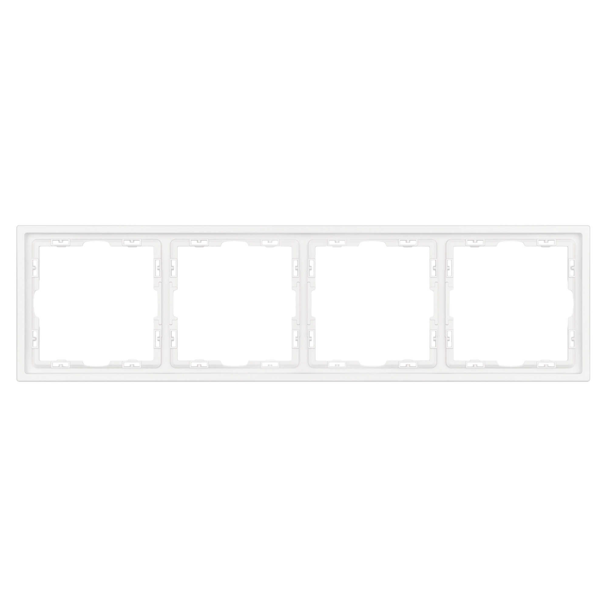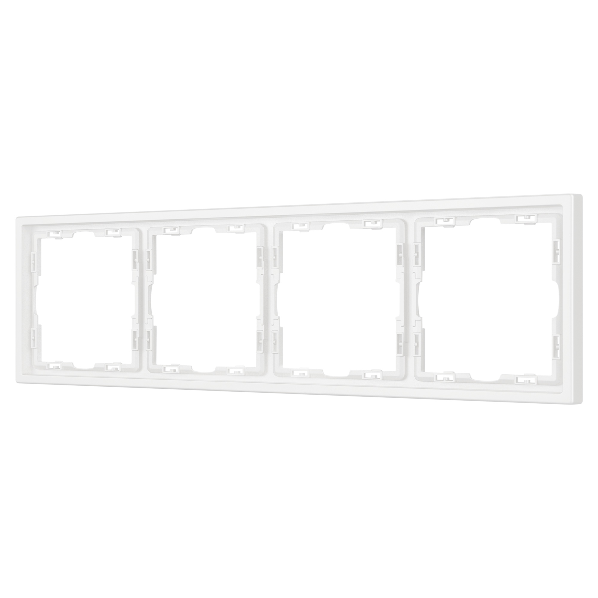 Рамка пластиковая на 4 поста, под встраиваемый механизм. Цвет - белый кварц, с Soft-Touch покрытием. Среднего уровня герметичности IP20. Ориентация монтажа горизонтальная. Габаритные размеры: длина 294 мм, ширина 81 мм, высота 8,55 мм. Гарантийный срок 12 мес.