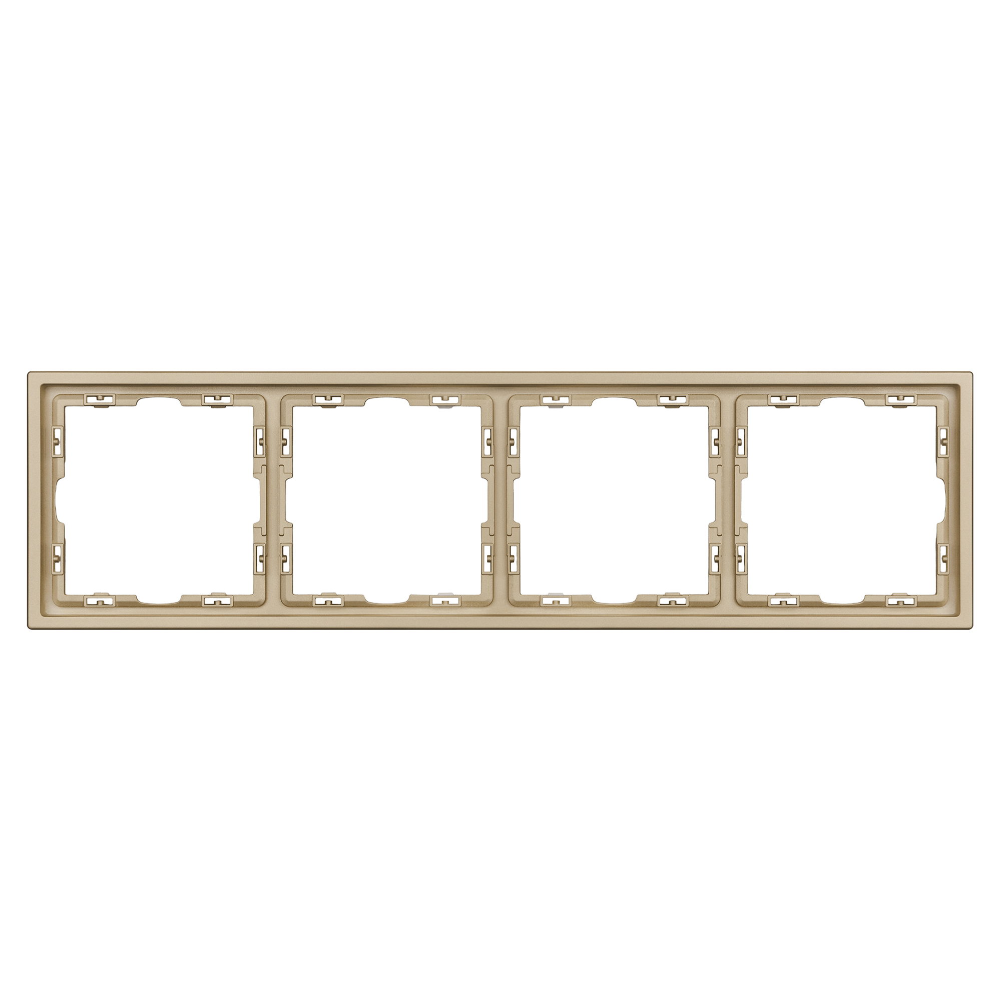 Рамка пластиковая на 4 поста, под встраиваемый механизм. Цвет - золотой песок, с Soft-Touch покрытием. Среднего уровня герметичности IP20. Ориентация монтажа горизонтальная. Габаритные размеры: длина 294 мм, ширина 81 мм, высота 8.55 мм. Гарантийный срок 12 мес.