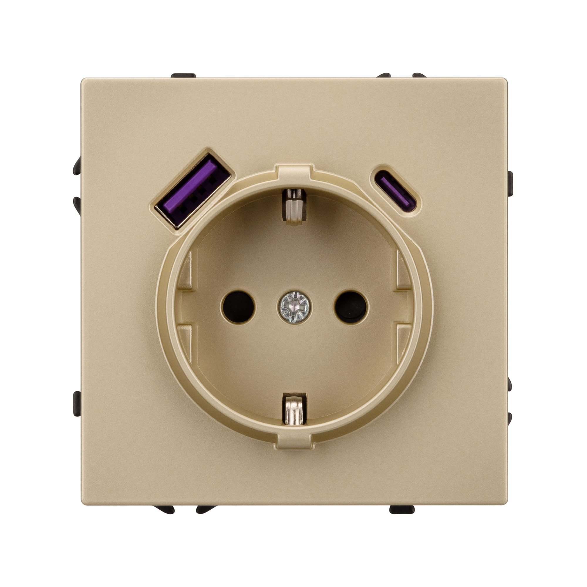 Механизм розетки с USB зарядкой, совместимый с рамками серии NOBE, создает утонченный минималистичный вид. Наличие USB Type A и Type C портов позволяет существенно сократить количество используемых розеточных постов под евровилку, сохраняя единую стилистику интерьера всего современного дизайн-проекта. Оба разъема поддерживают протокол быстрой зарядки Quick Charge QC 3.0, помимо этого для разъема Type C доступен протокол Power Delivery*.