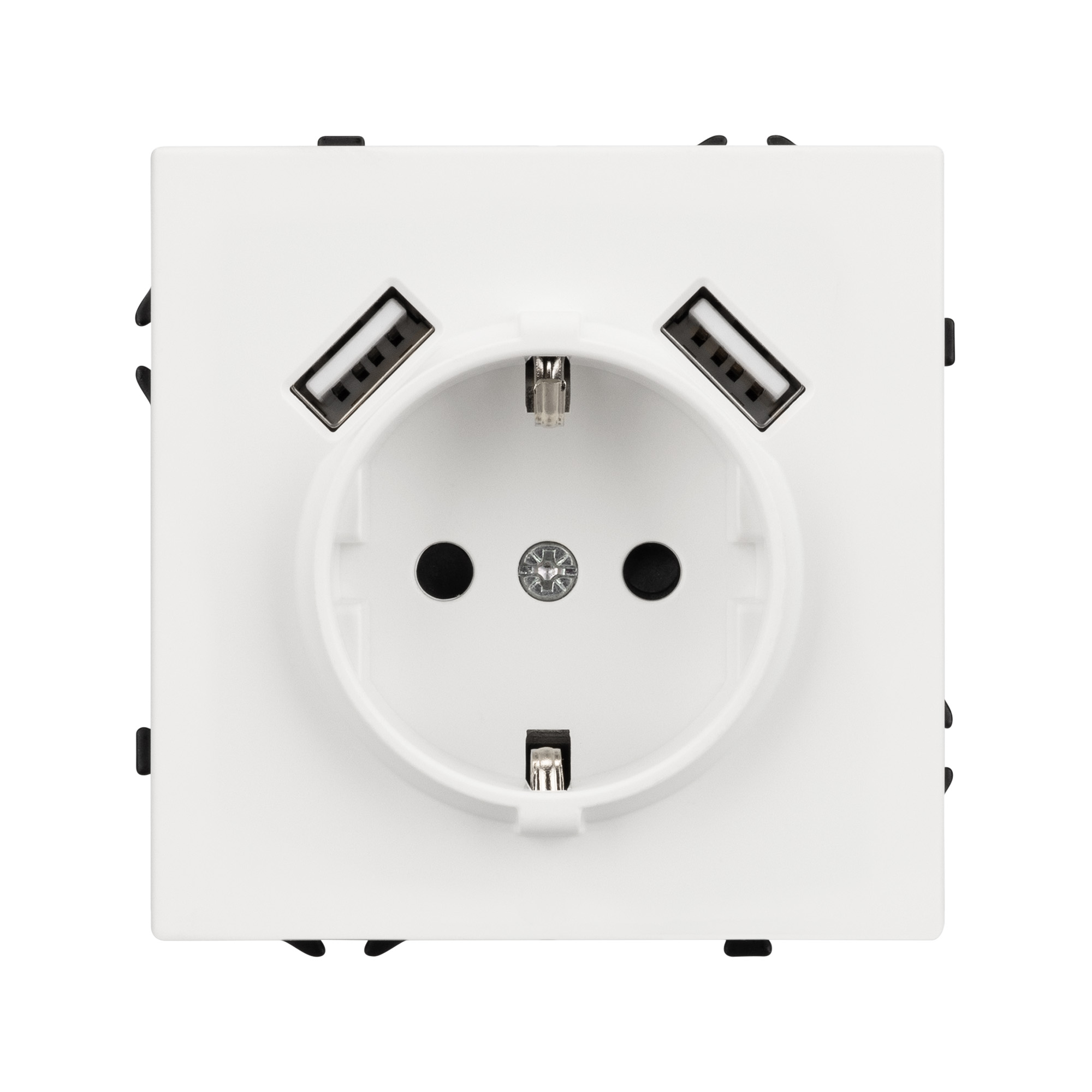 Механизм розетки с USB зарядкой, совместимый с рамками серии NOBE, создает утонченный минималистичный вид. Наличие двух USB Type A портов позволяет существенно сократить количество используемых розеточных постов под евровилку, сохраняя единую стилистику интерьера всего современного дизайн-проекта. Видимая часть механизма выполнена из высококачественного пластика цвета белый кварц и имеет Soft-Touch покрытие, что придает изделию приятные тактильные ощущения и стильный внешний вид.