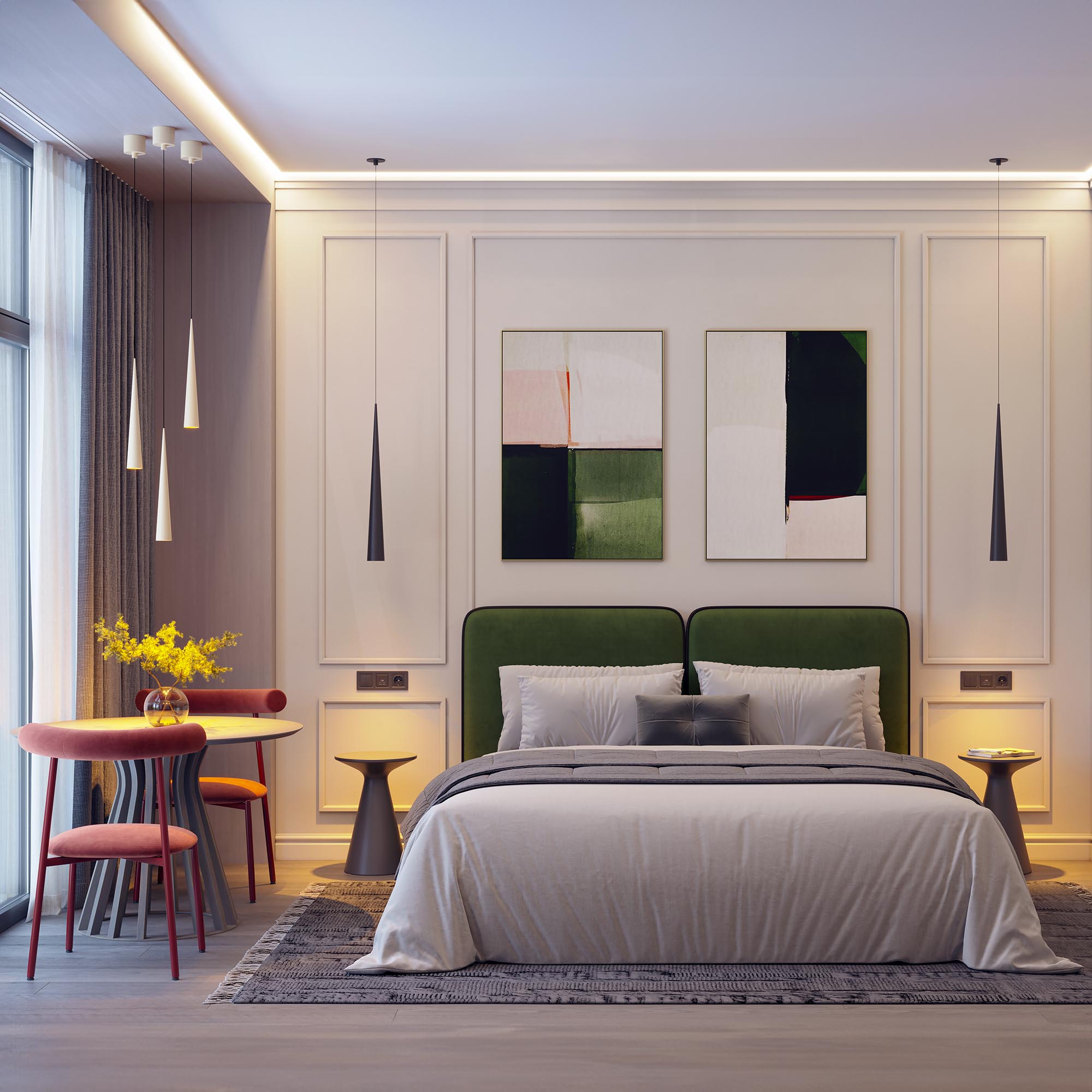 Подвесной светодиодный светильник STIRIA мощностью 5 Вт предназначен для акцентной декоративной подсветки в жилых или коммерческих помещениях. Светильник с узким углом излучения 36 градусов оригинально дополнит интерьеры кухни-гостиной или помещений отелей, кафе, ресторанов. Максимальная длина регулируемого подвеса 2000 мм. Подключение осуществляется с помощью входящего в комплект драйвера напрямую к сети переменного тока 230 В. Индекс CRI>92 отвечает за отличное восприятие и передачу цветовых оттенков. Низкая пульсация обеспечивает комфортное освещение без мерцания. Алюминиевый окрашенный корпус светильника выполнен в форме удлиненного конуса. Пылевлагозащита на уровне IP20 позволяет применять модель внутри помещений, где нет контакта с водой или другими жидкостями. Два вида монтажных чаш в комплекте позволяют установить светильник как встраиваемым способом, так и накладным.