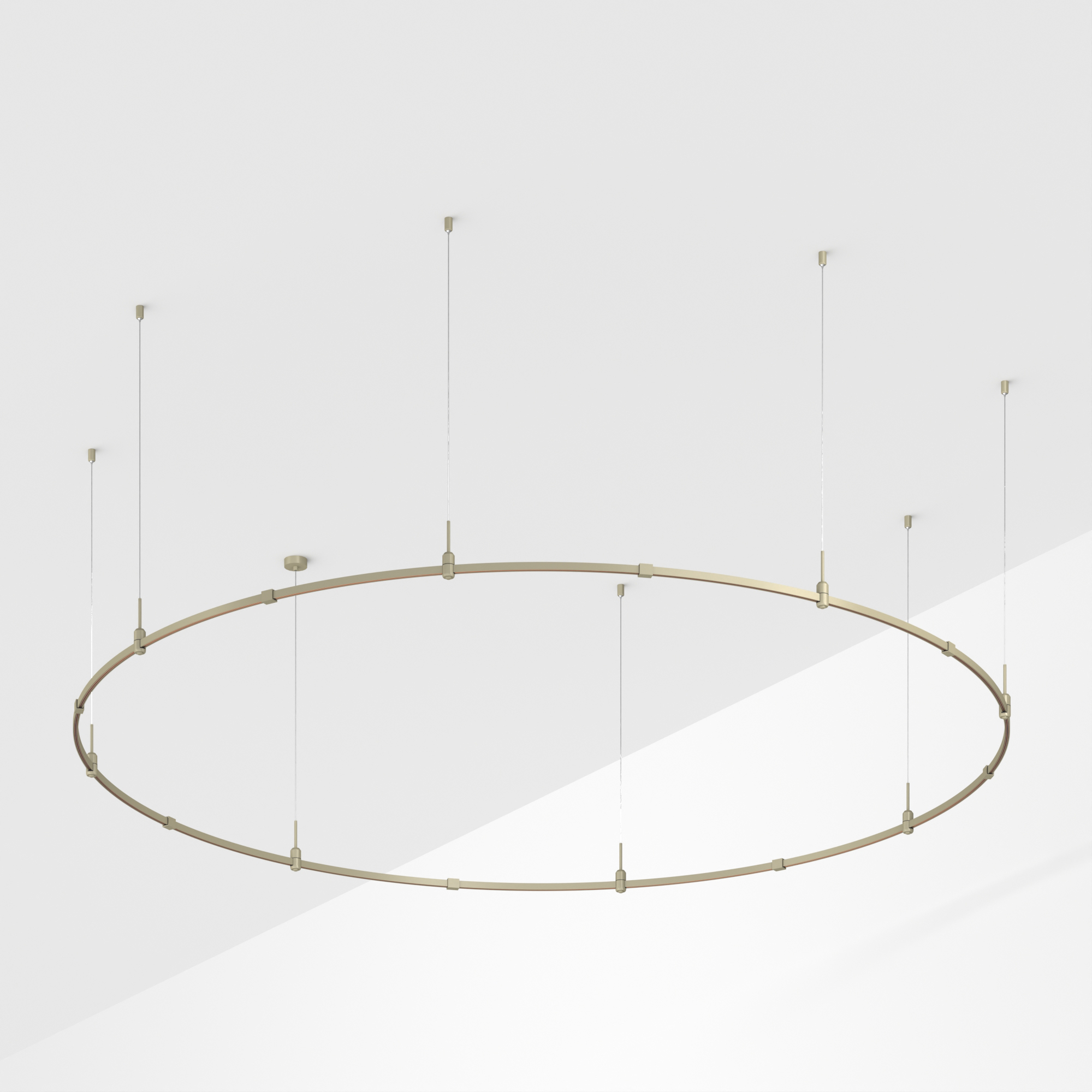 Подвесная конструкция APRIORI, форма круг. В комплекте треки с аксессуарами и гибкими подвесами. DC48V. Материал алюминий, цвет серо-оливковый. Размер: диаметр 3000мм, высота 22мм. Светильники и источники питания приобретаются отдельно.