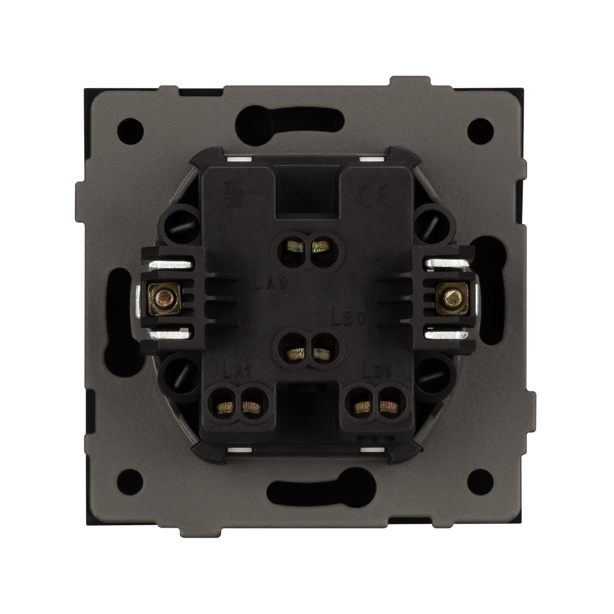 Механизм выключателя света совместим с рамками серии TENDO, создает утонченный минималистичный вид. Скрытый тип монтажа позволяет гармонично встроить в интерьер любого современного дизайн-проекта. Видимая часть механизма выполнена из высококачественного пластика матового черного цвета и имеет Soft-Touch покрытие, что придает изделию приятные тактильные ощущения и стильный внешний вид. Контактная часть присоединяется при помощи винтовых зажимов, позволяя надежно подсоединить механизм выключателя к питающим элементам. А усиленные распорные лапки двойного захвата надежно фиксируют механизм в установочном подрозетнике круглого сечения диаметром 60мм. Суппорт окрашен порошковой краской и выполнен из металла толщиной 1,5мм, что обеспечивает безопасность и уверенность в установке. На каждой стороне суппорта размещены фиксирующие элементы, позволяющие комбинировать механизмы в системы до 5шт горизонтально, под соответствующую рамку.