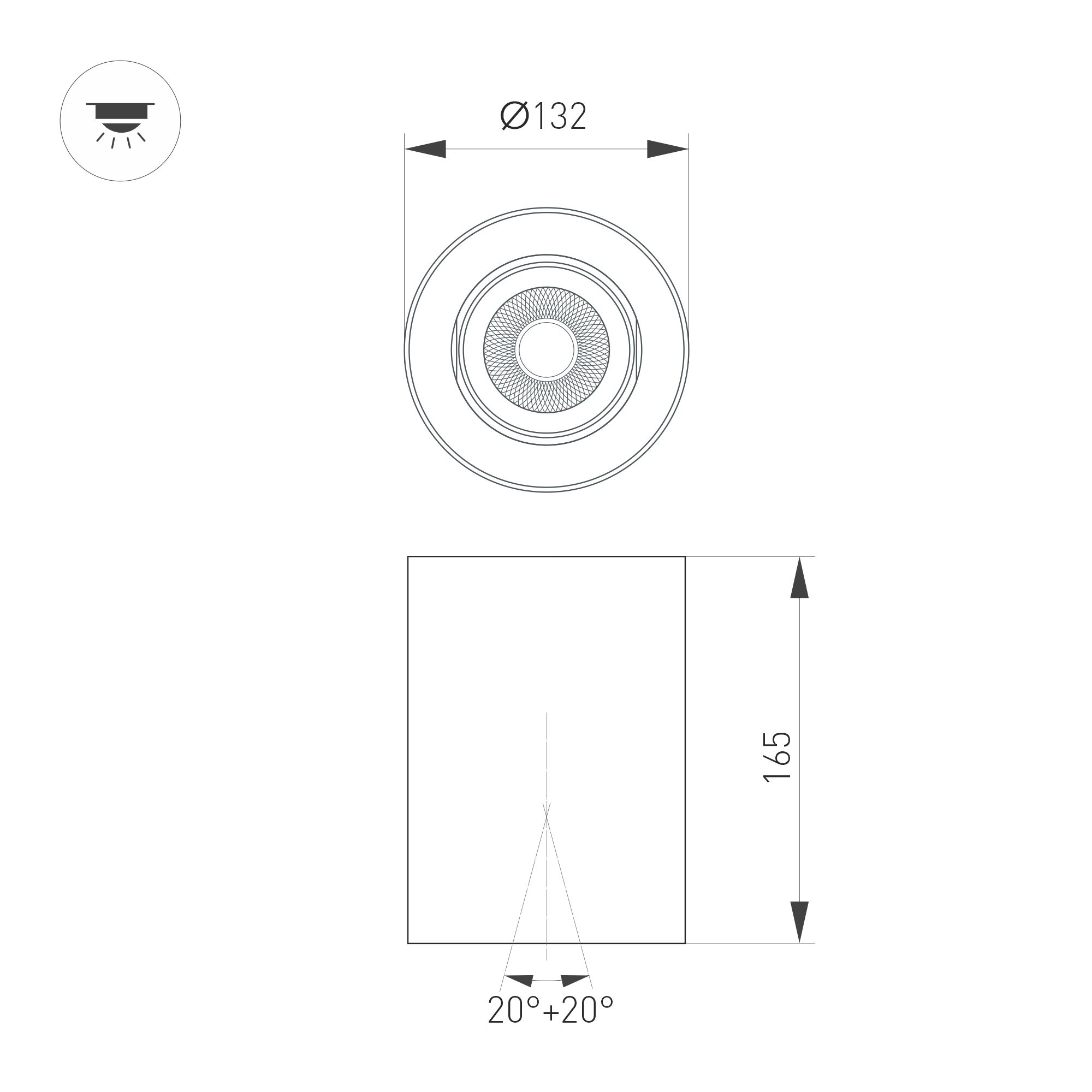 Накладной интерьерный светильник. Мощность 24 Вт, св. поток 2400 лм, 99 лм/Вт, теплый 3000 K, CRI>90, угол 24°, регулируемое направление луча 40°(20+20), поворотный световой модуль вокруг своей оси на 340°, UGR <11, напряжение питания 230 В. Белый круглый корпус из алюминия, степень защиты IP54. Размер: диаметр 132 мм, высота 165 мм. Монтаж накладной. Драйвер 27-45 В, 600мА, пульсация <1%.